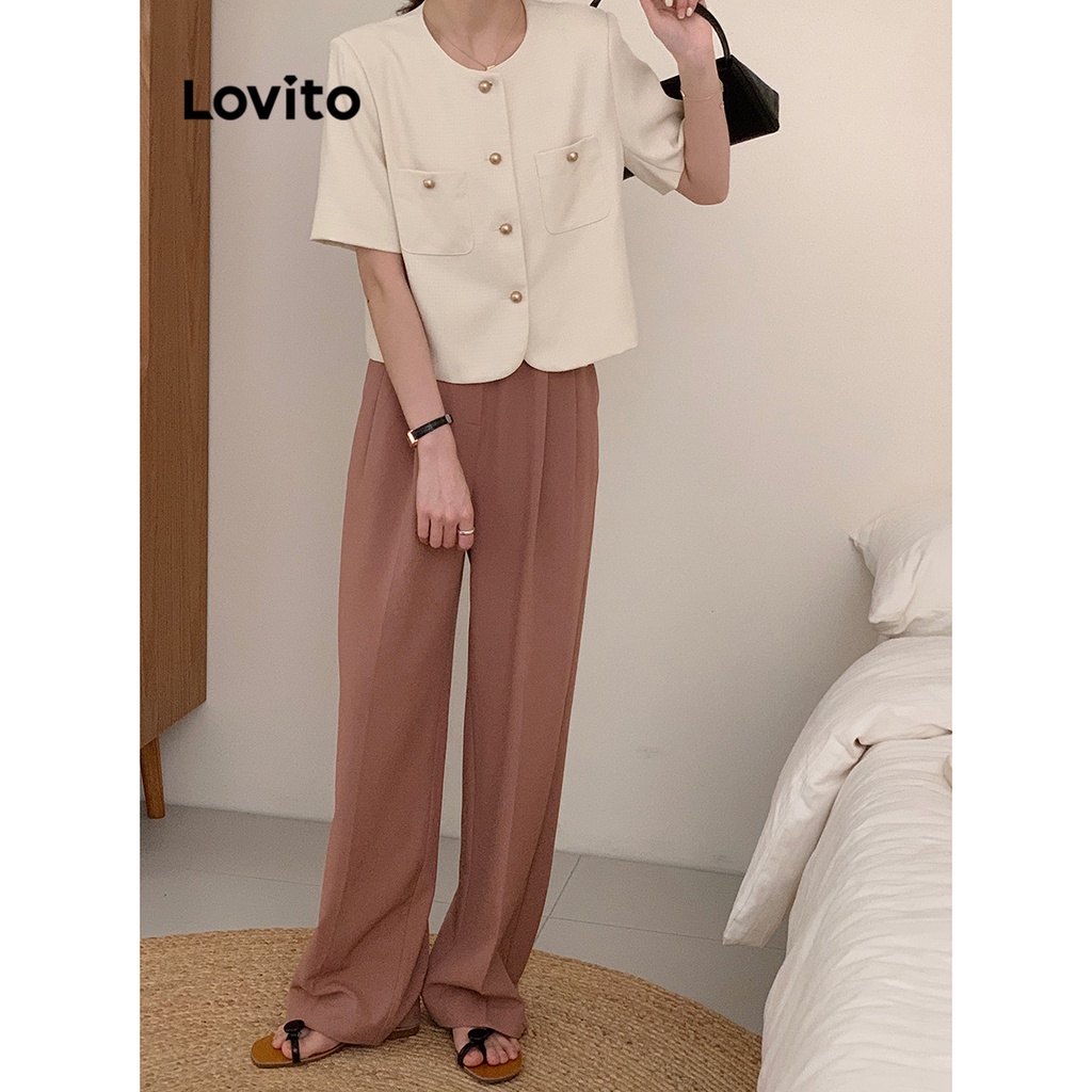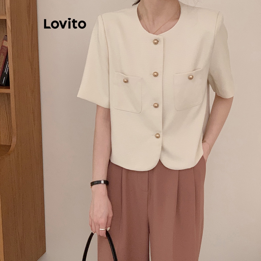 Lovito Áo Blazer Nữ Có Nút Lông giả phía trước màu trơn thường ngày lna39043 (Nhiều màu)