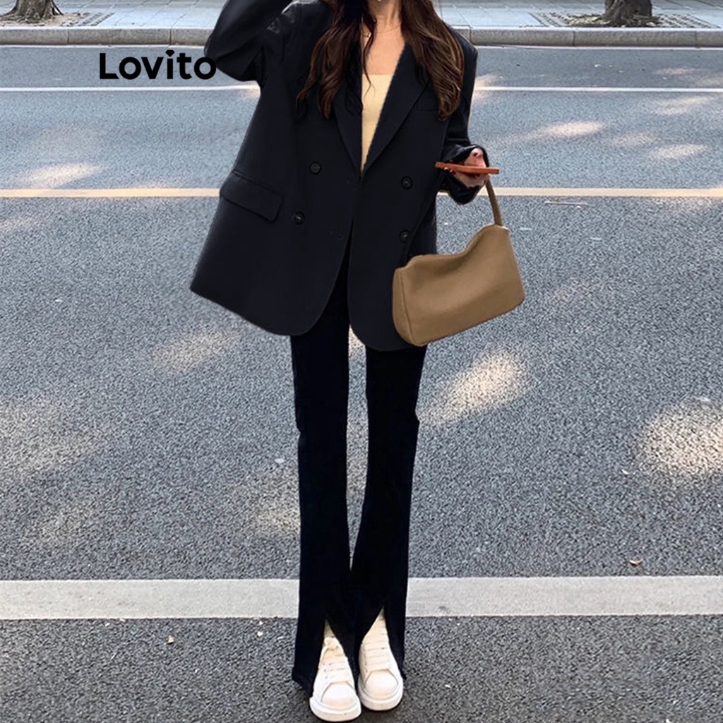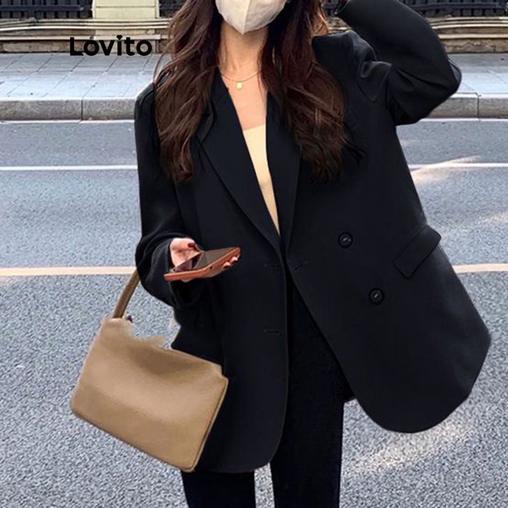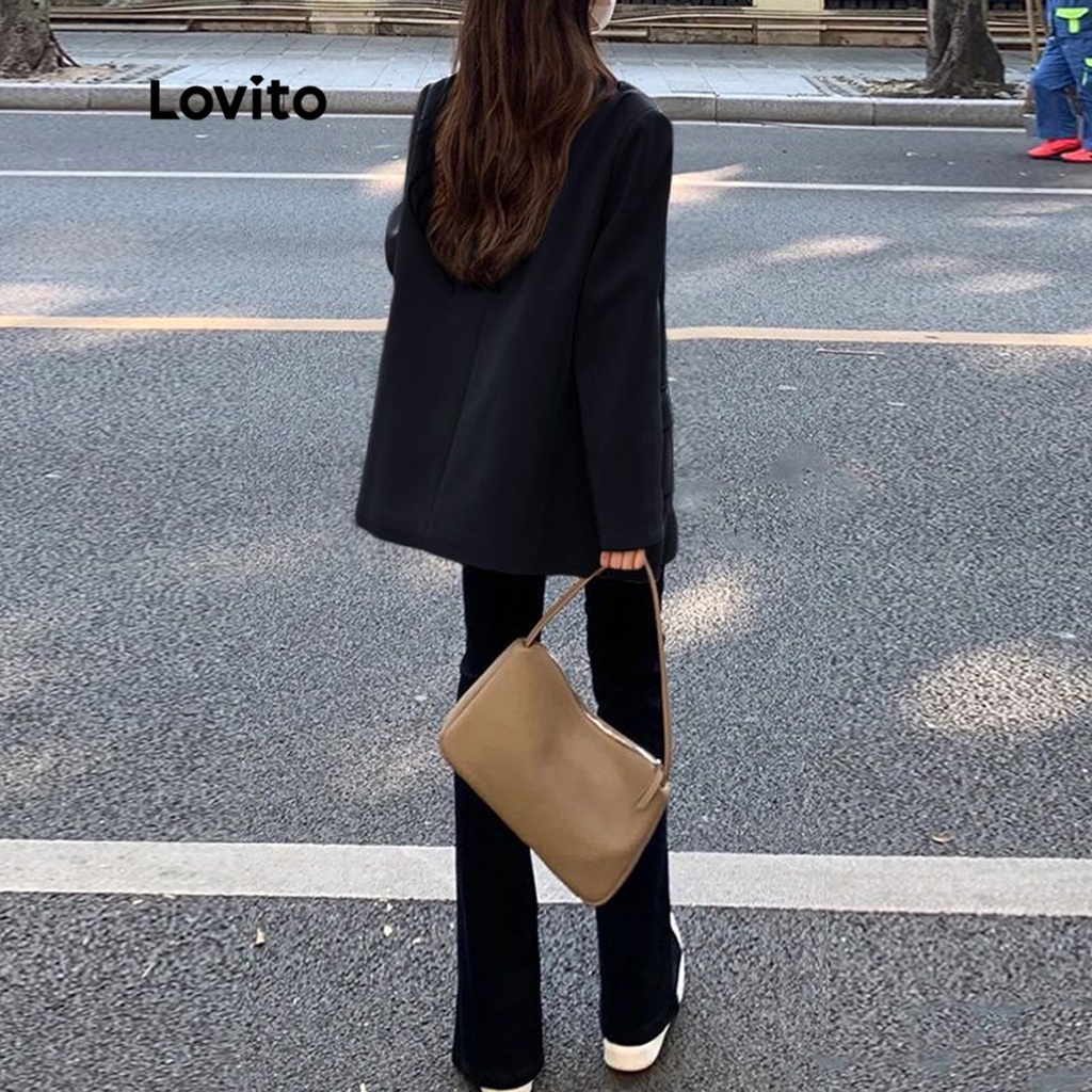 Lovito Áo Blazer Nữ Có Nút Lông giả phía trước màu trơn thường ngày lna39043 (Nhiều màu)
