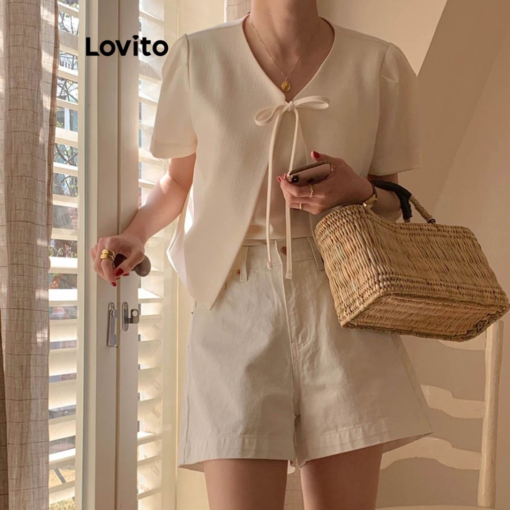 Lovito Áo khoác dạng khối màu trước có cúc trơn thường ngày cho Nữ lne17082 (Màu Trắng)