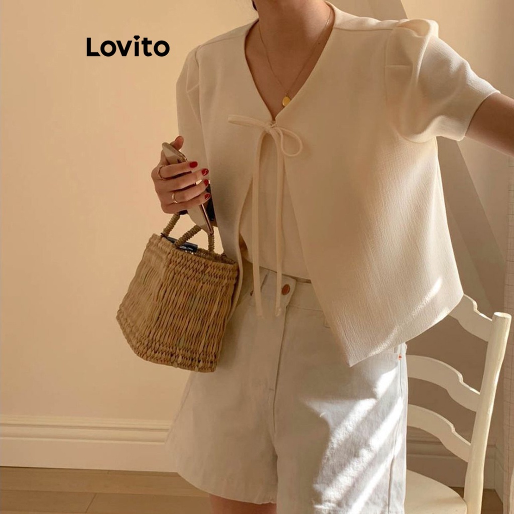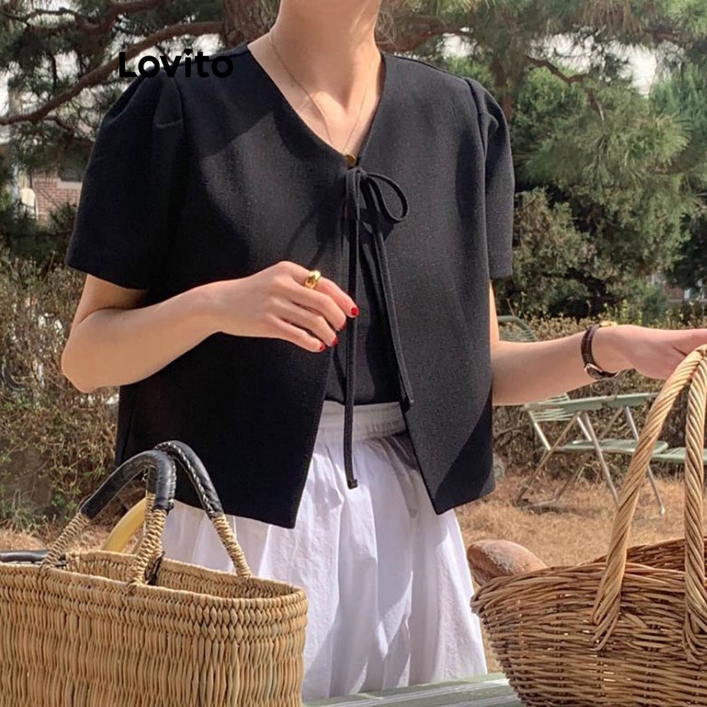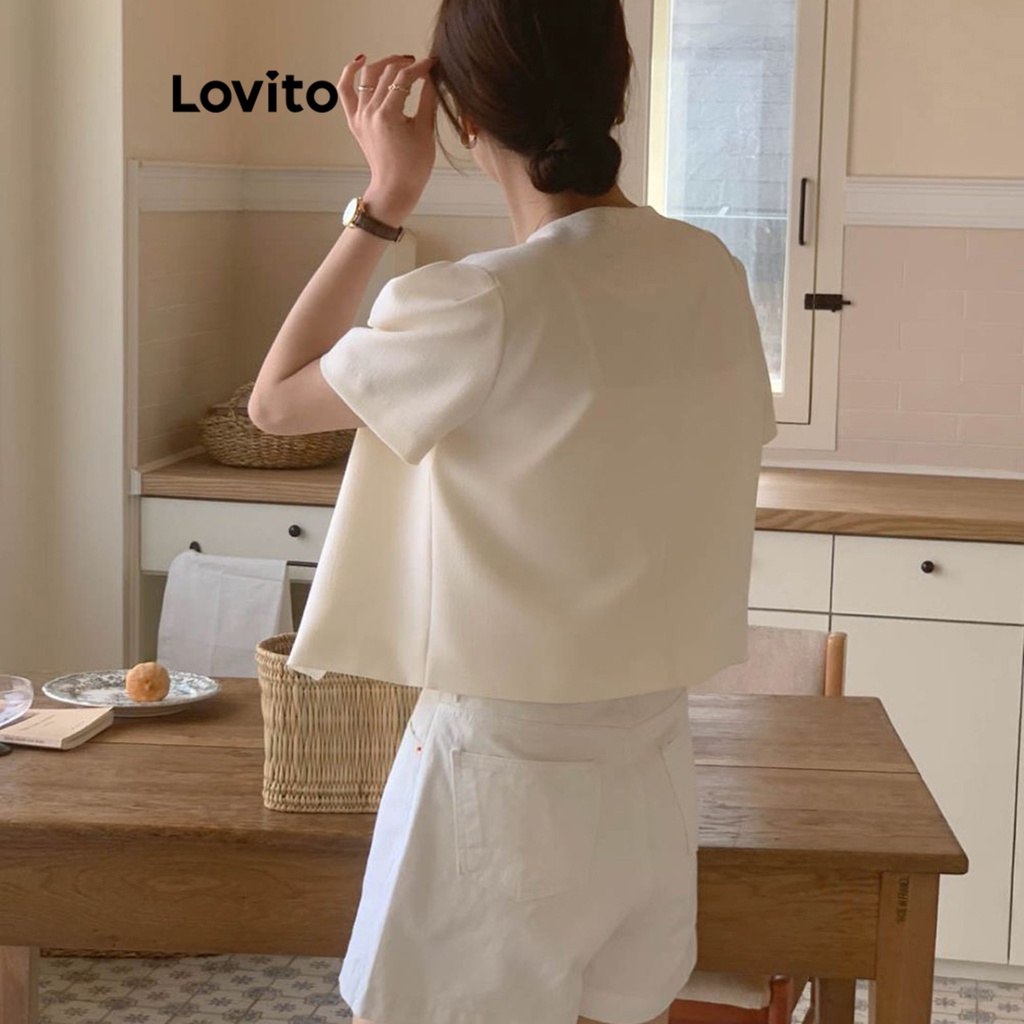 Lovito Áo blazer nữ vải tuýt tay phồng màu trơn phong cách đáng yêu l73ad033