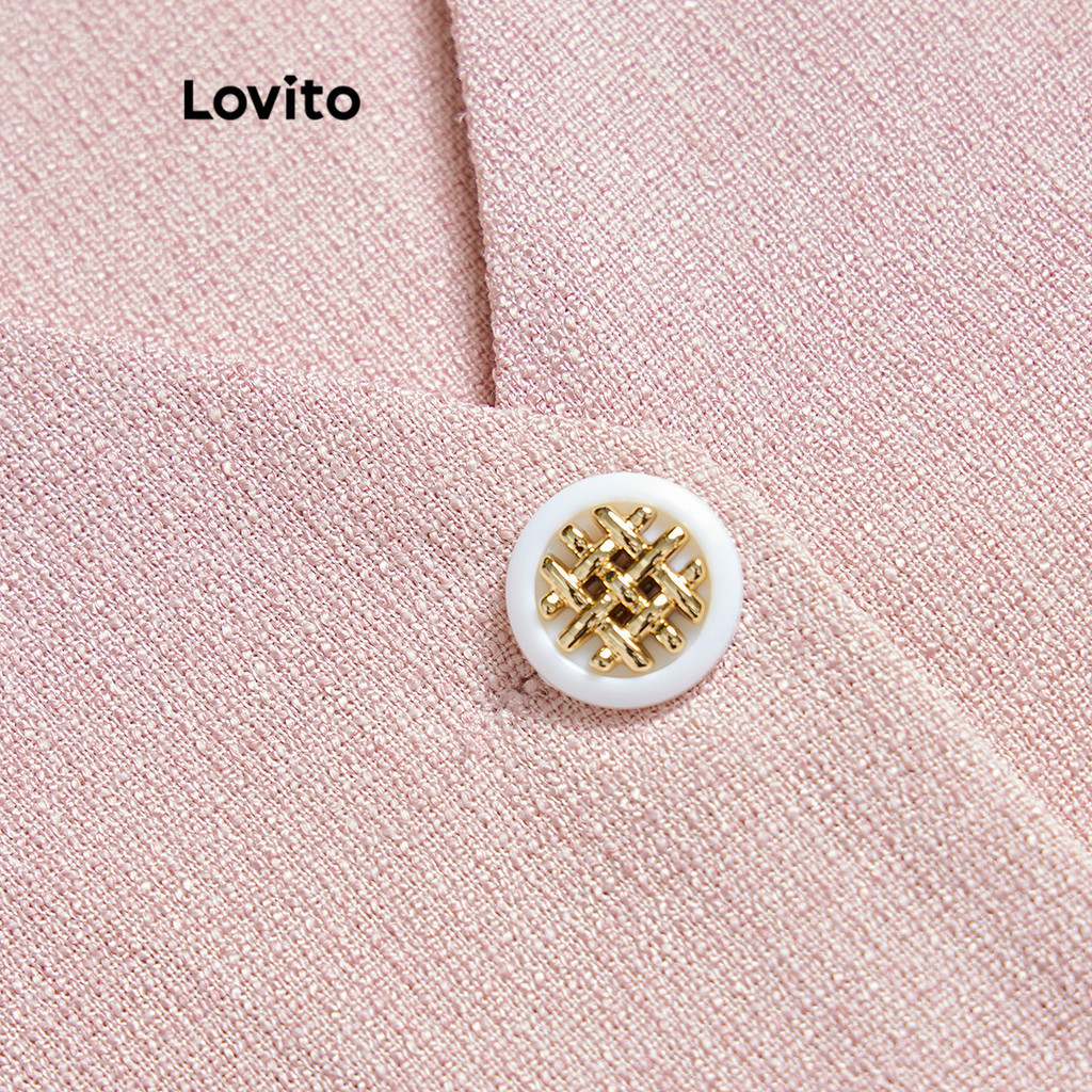 Lovito Áo Blazer có túi màu trơn thường ngày cho Nữ lne16079 (Hoa mai)