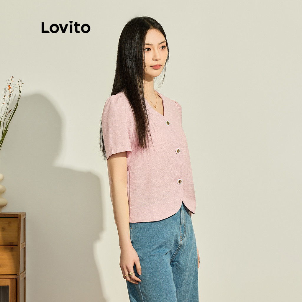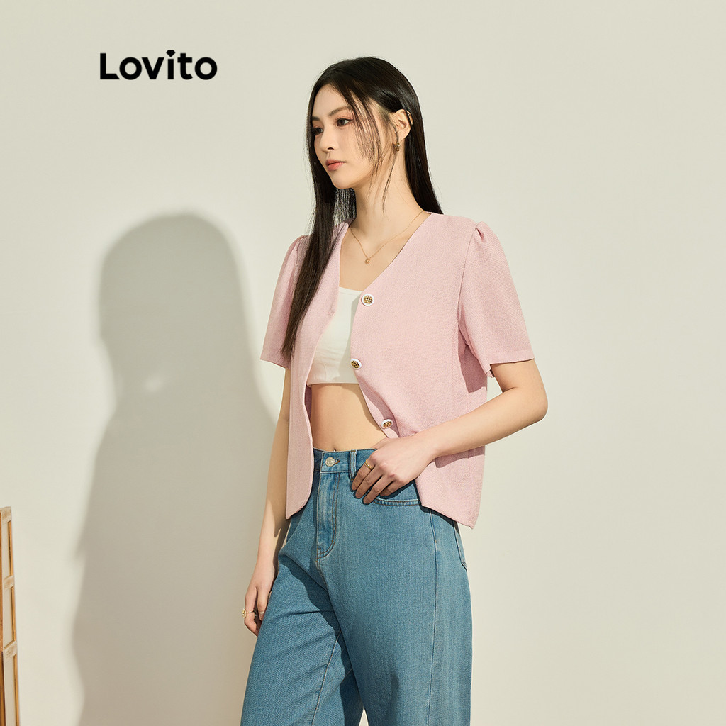 Lovito Áo Blazer Nữ Có Nút Lông giả phía trước màu trơn thường ngày lna39043 (Nhiều màu)