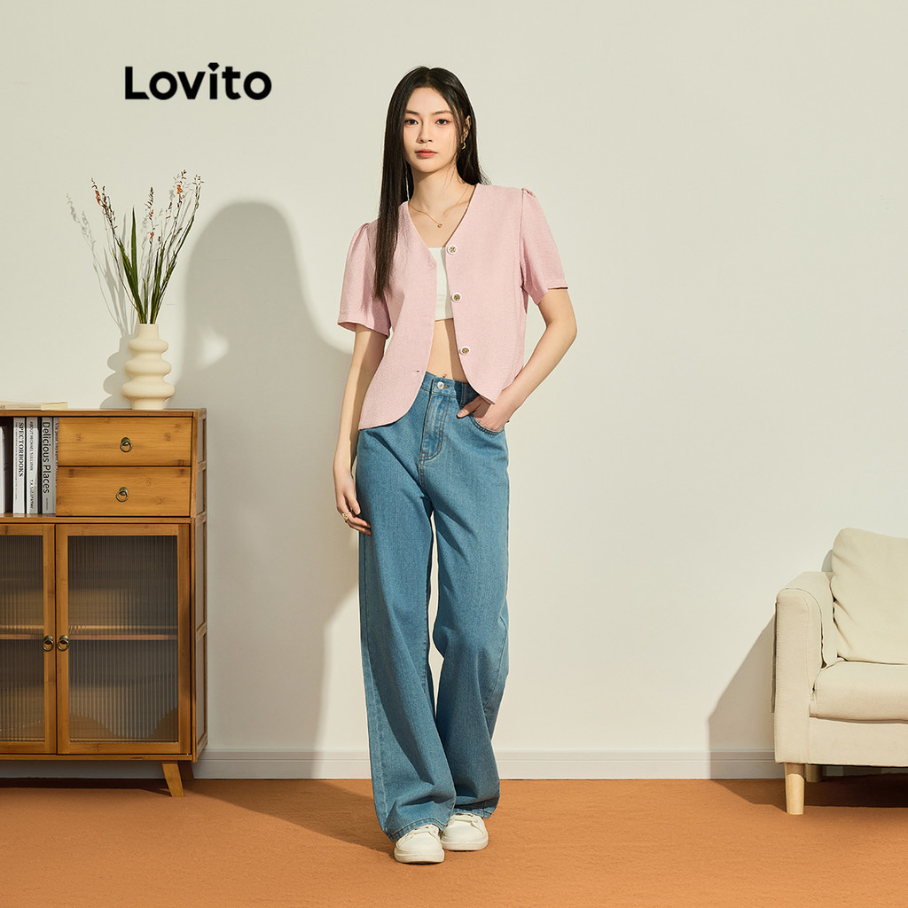 Lovito Áo blazer nữ có khuy màu trơn thường ngày l58ad063 (Màu Trắng nhạt)