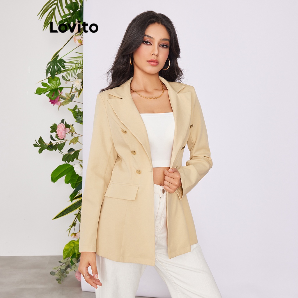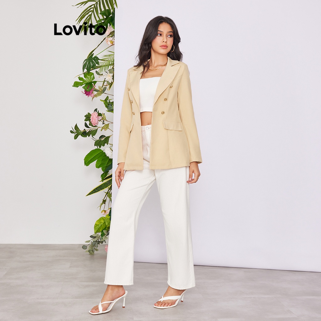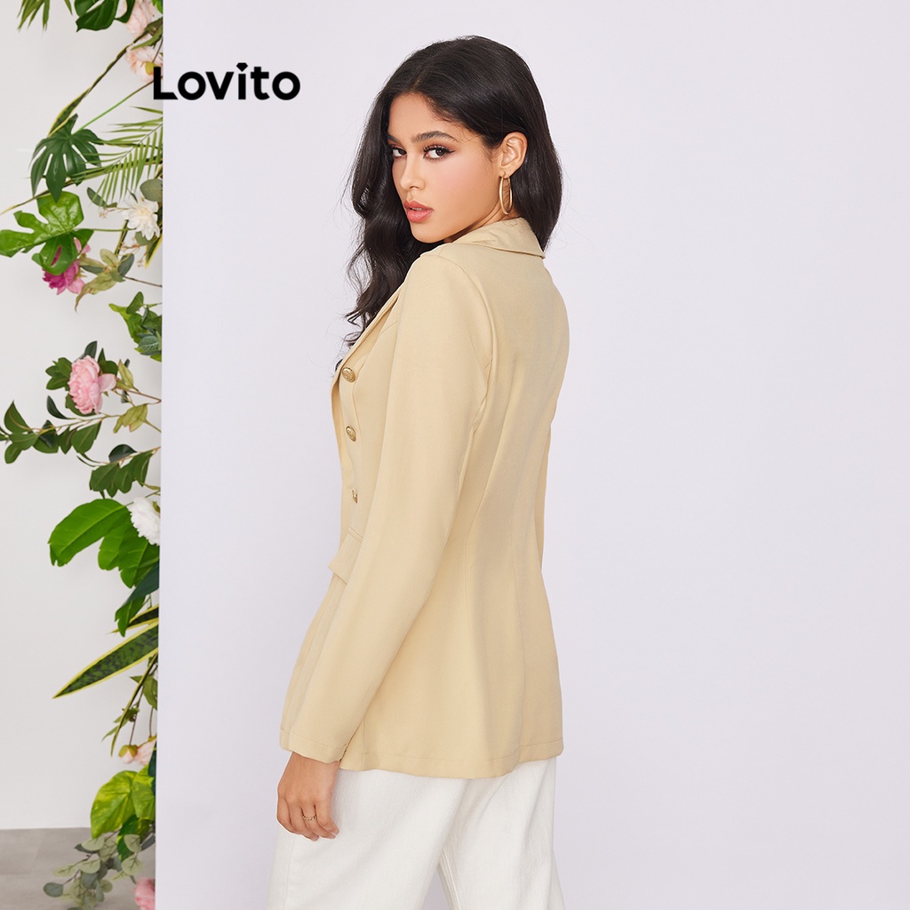 Lovito Áo blazer nữ có khuy màu trơn thường ngày l58ad063 (Màu Trắng nhạt)