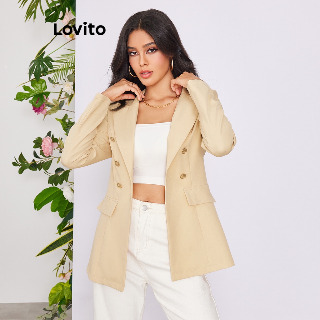 Lovito lne36029 Áo Blazer phía trước có nút túi màu trơn thường ngày (Kaki/Xám/Trắng nhạt/Đen)