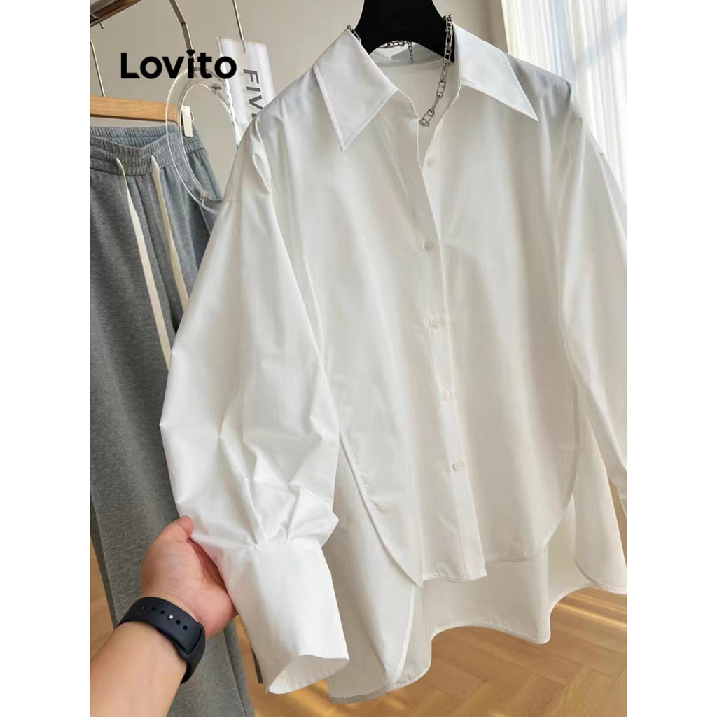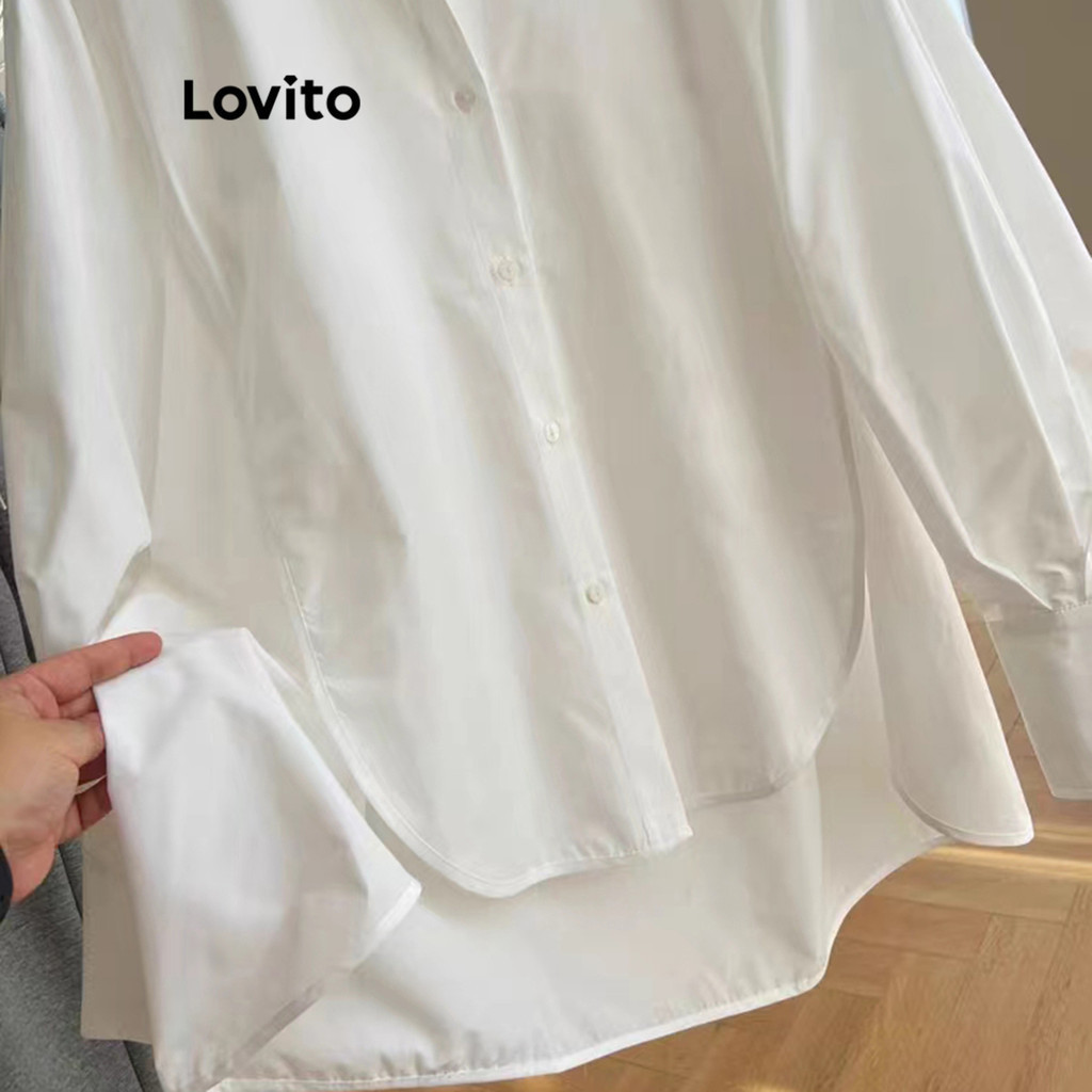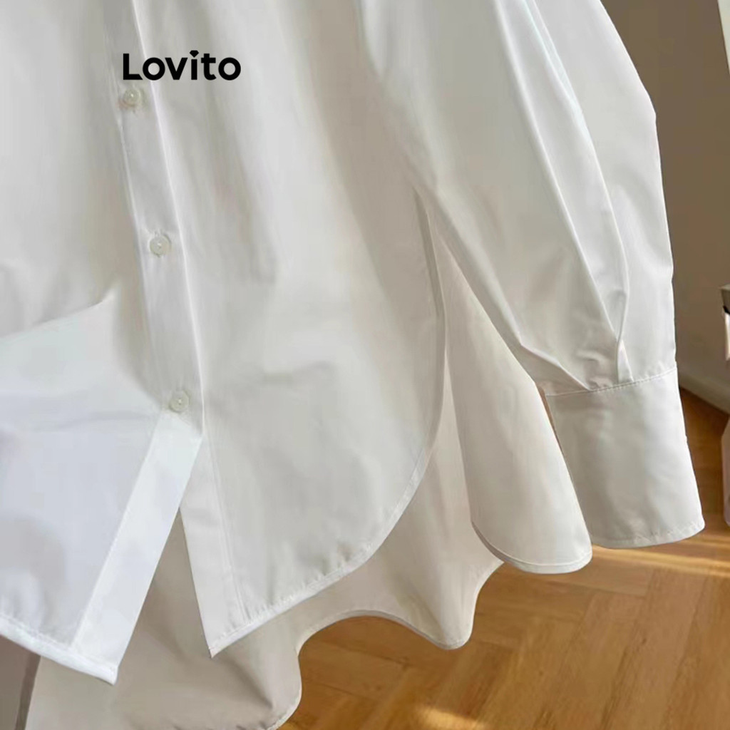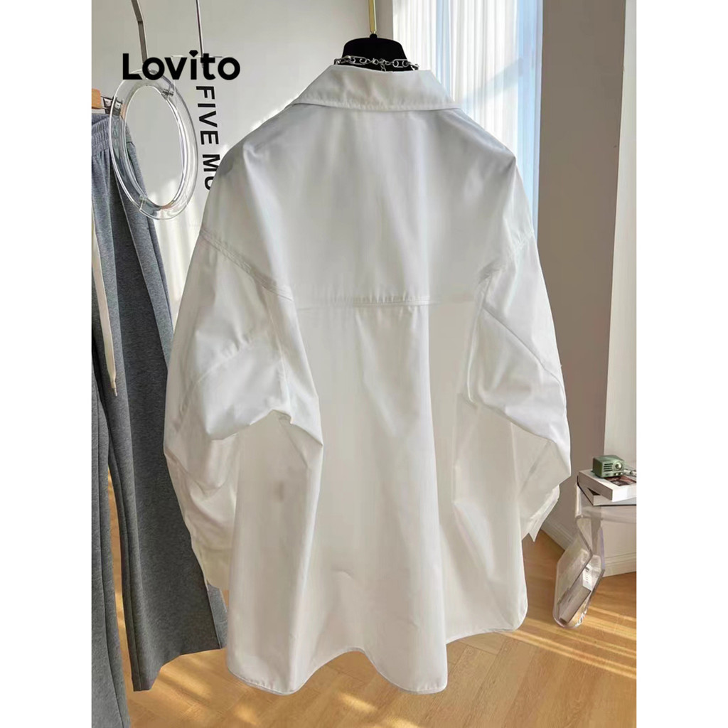 Lovito Áo cánh tay phồng Y2K màu trơn thường ngày cho Nữ l52ad035 (Màu Trắng)