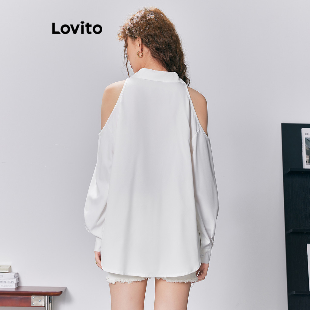 Lovito Áo cánh nữ không đối xứng có cúc trước trơn thanh lịch lne24084 (Nhiều màu)