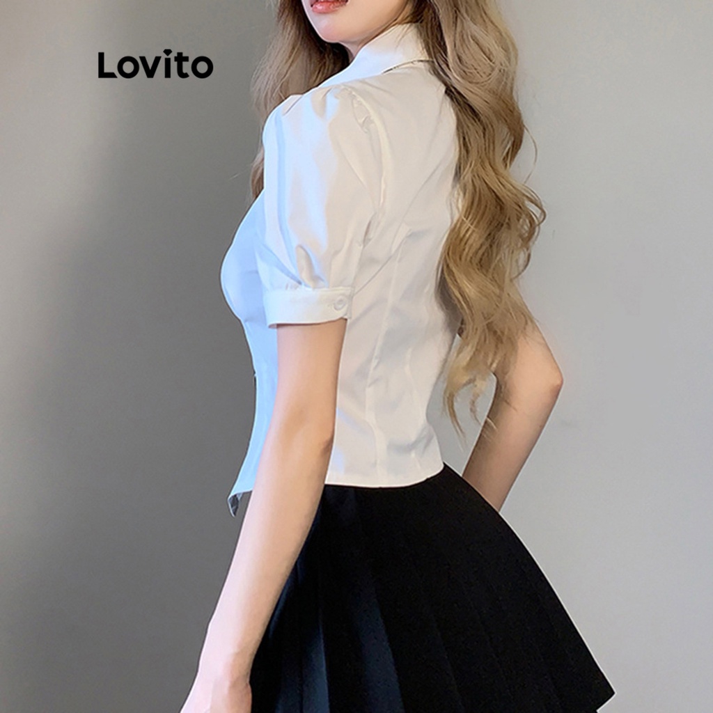 Lovito Áo cánh nữ không đối xứng có cúc trước trơn thanh lịch lne24084 (Nhiều màu)
