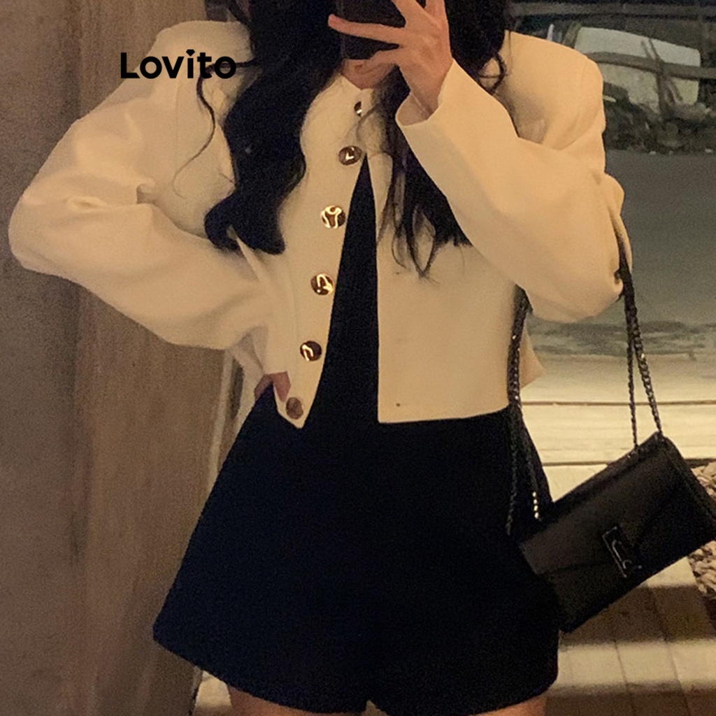 Lovito Áo Khoác Cardigan Dài Tay Viền bất đối xứng màu trơn thường ngày cho Nữ lnl03016 (Màu Trắng/Đen)