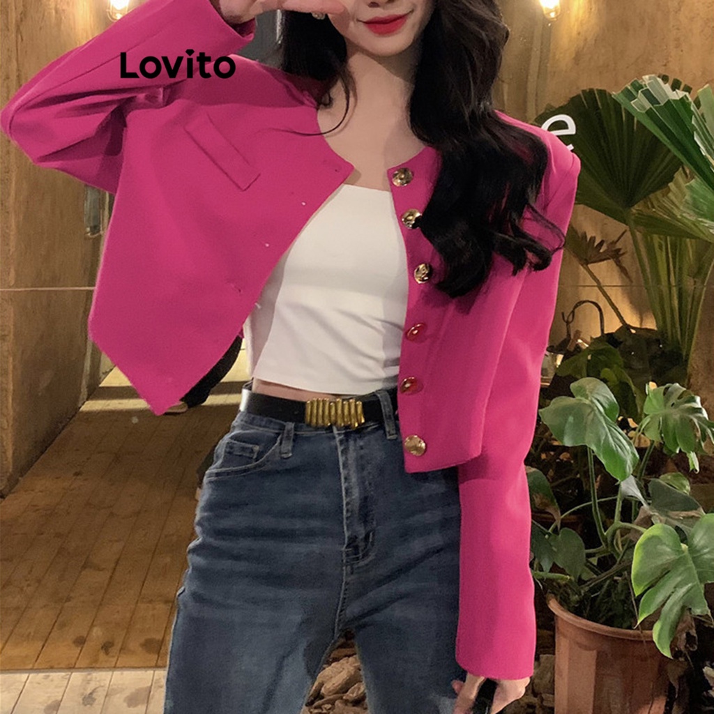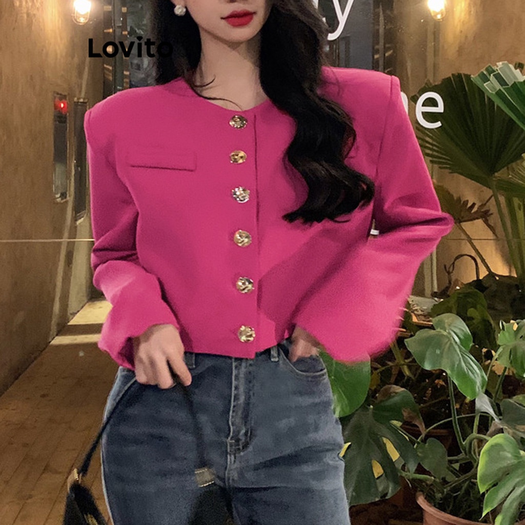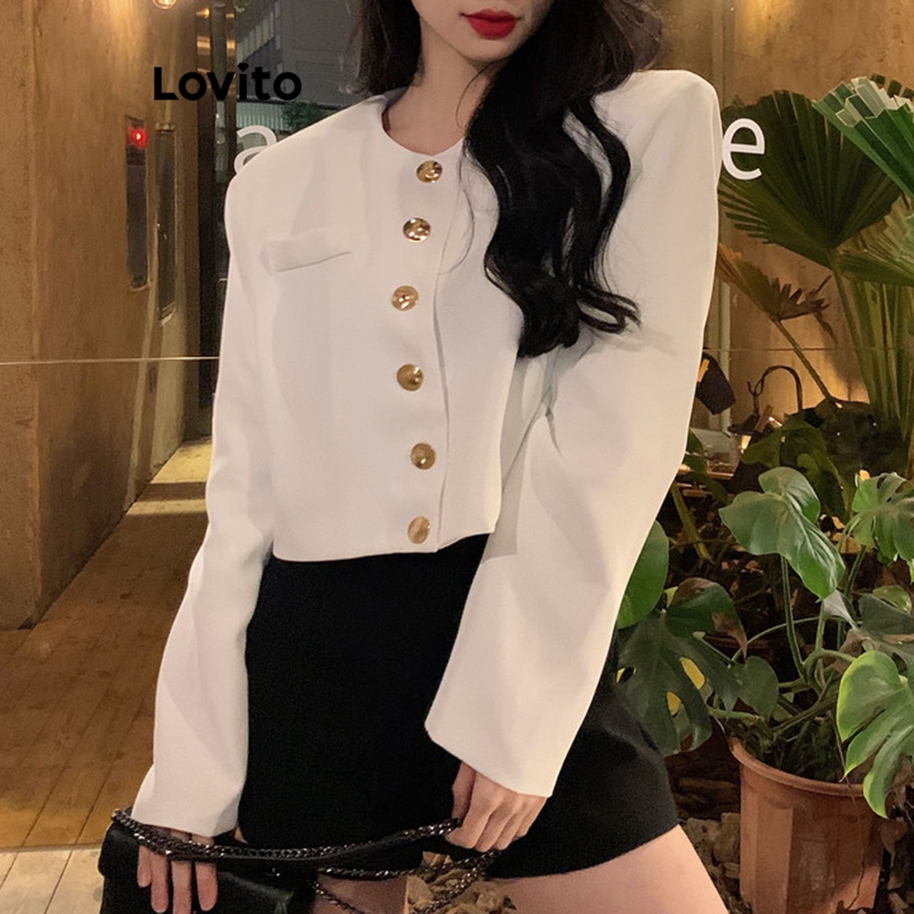 Lovito quần áo phía trước có khuy màu trơn thường ngày cho Nữ lne27211 (màu xám đậm)