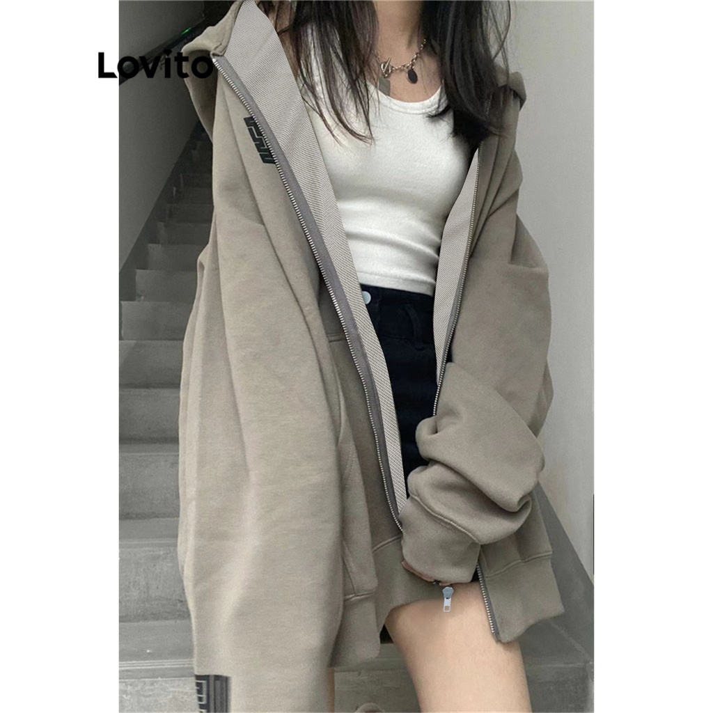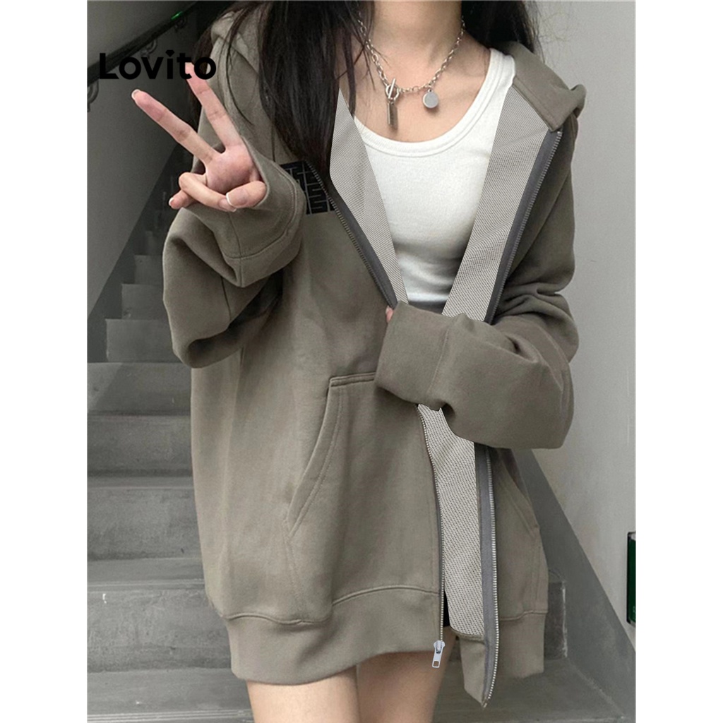 Lovito Áo khoác nữ thường ngày có khóa kéo màu trơn lne17161 (Nhiều màu)