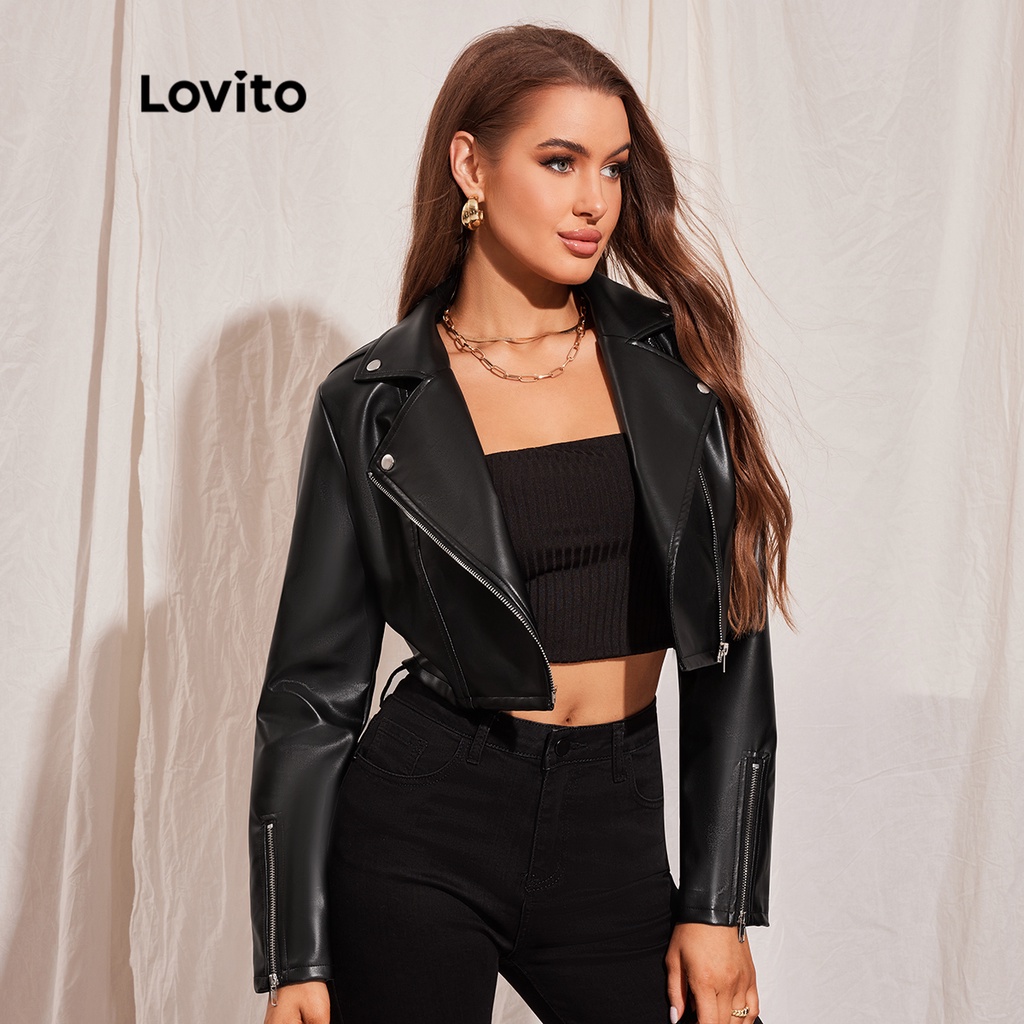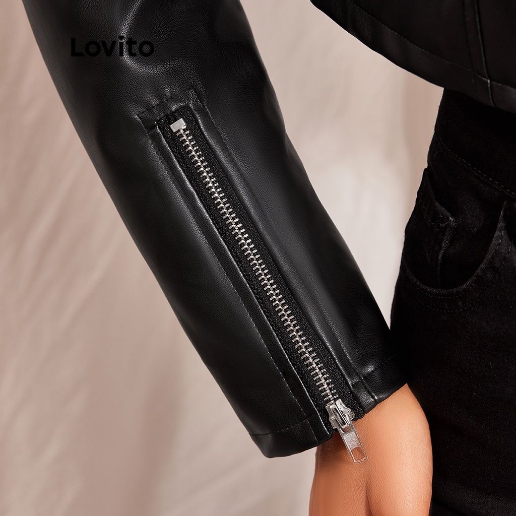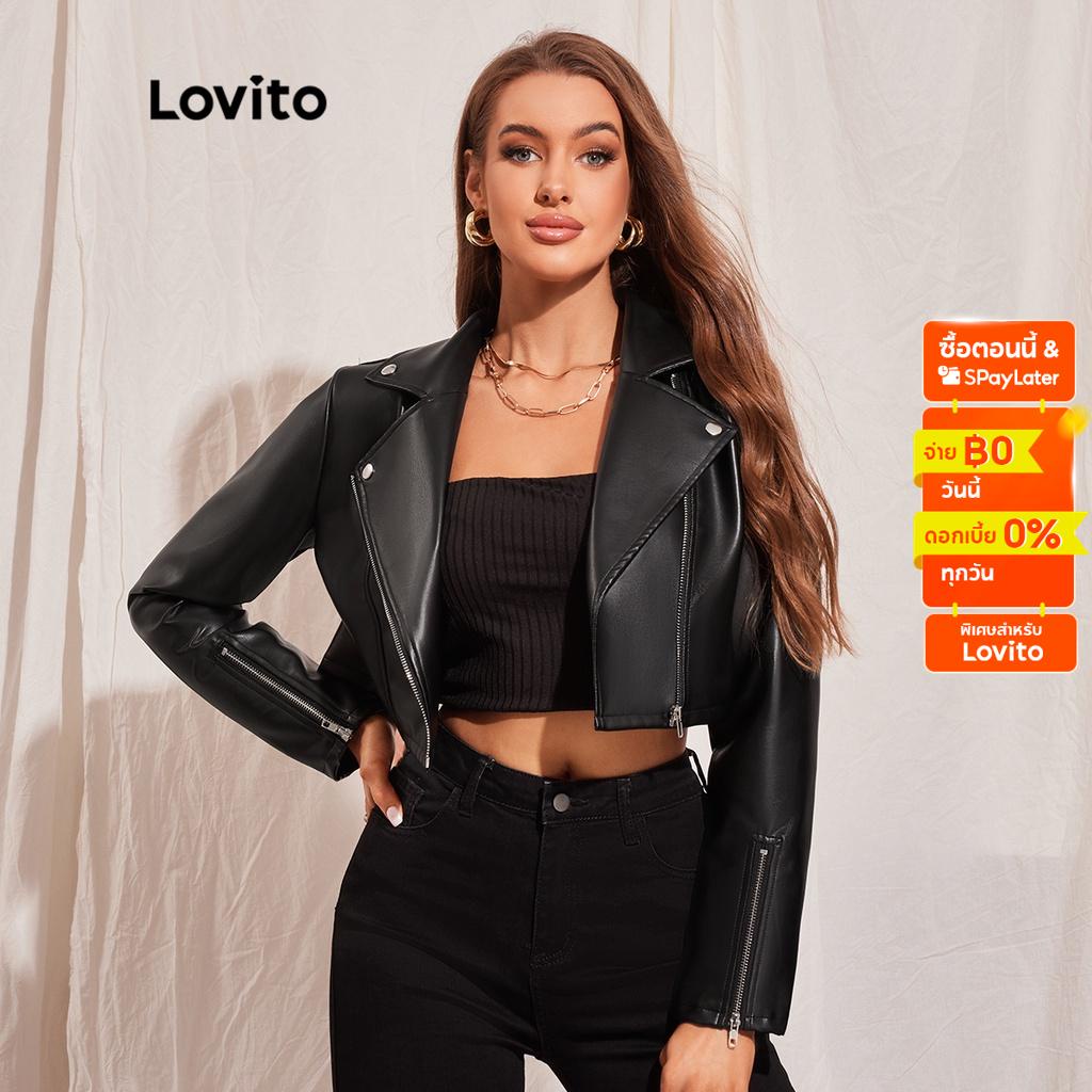 Lovito Áo khoác nữ thường ngày có khóa kéo màu trơn lne17161 (Nhiều màu)