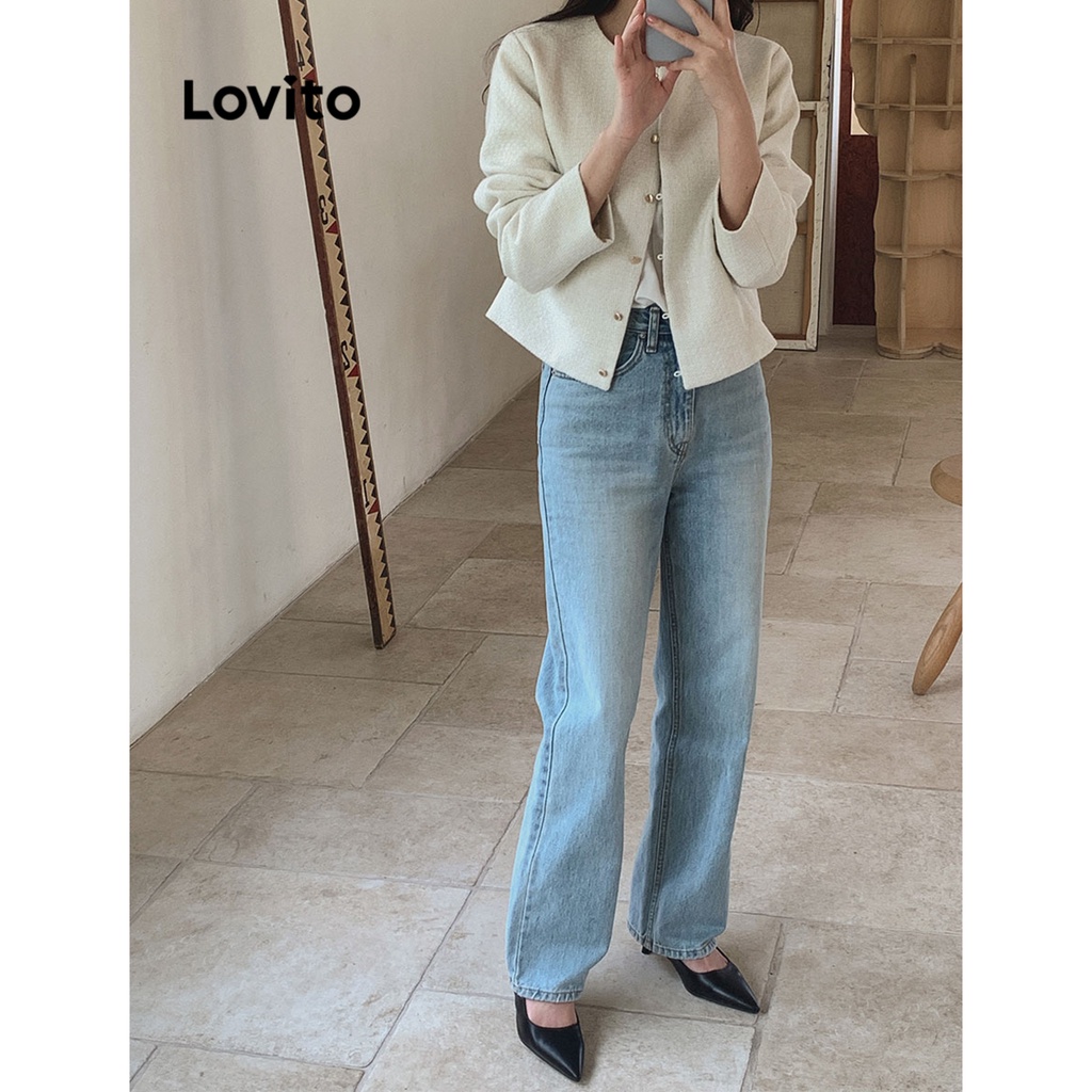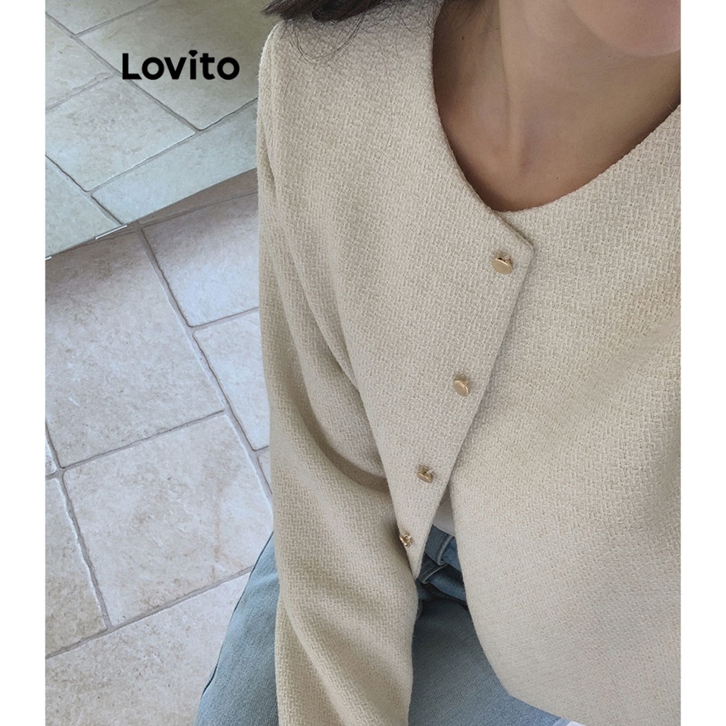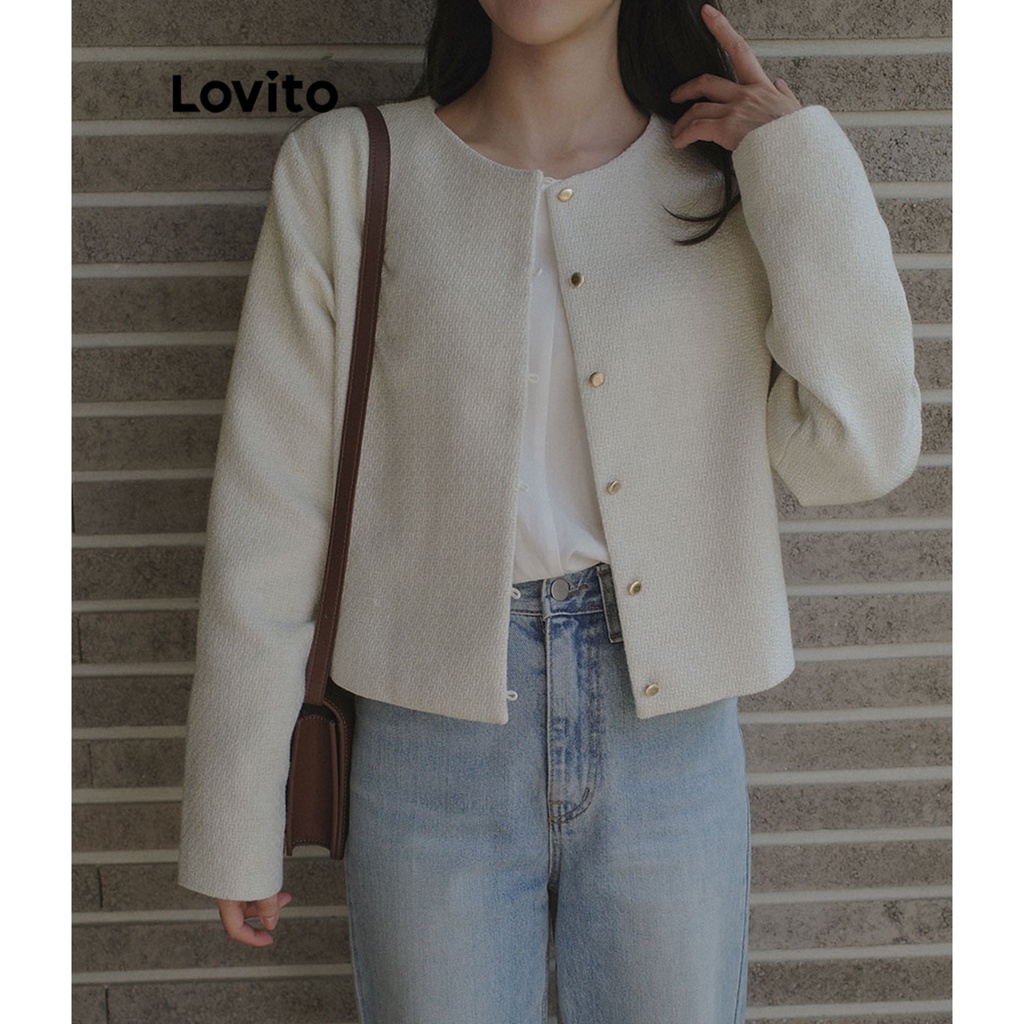 Lovito Áo khoác cài khuy màu trơn thường ngày thời trang nữ l39ad009 (Màu Trắng nhạt)