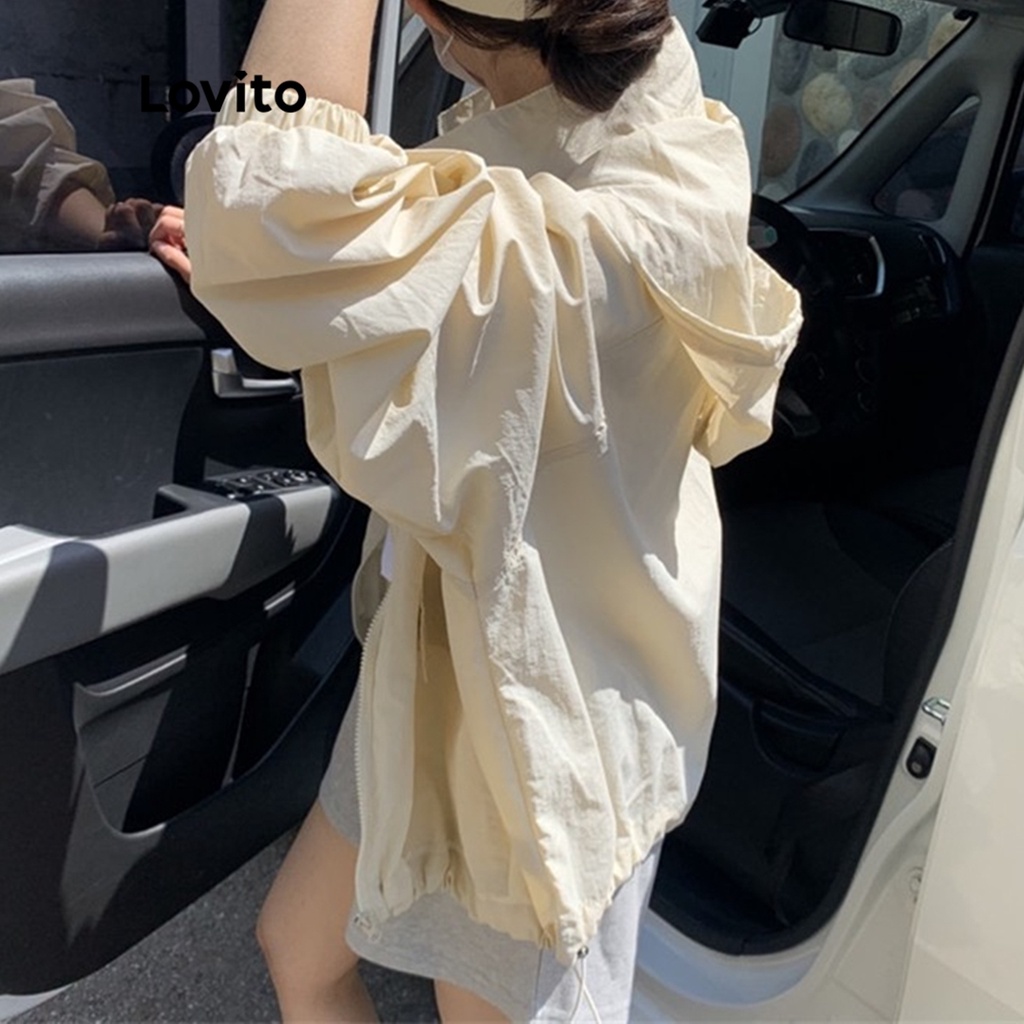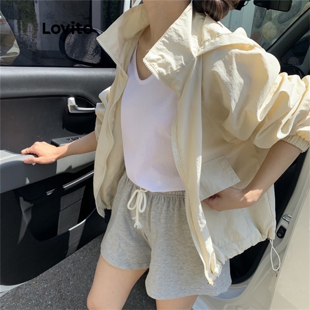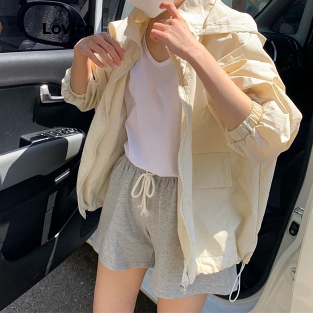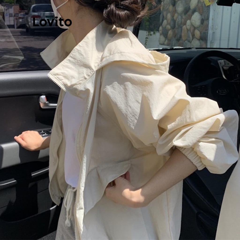 Lovito Áo khoác nữ thường ngày có khóa kéo màu trơn lne17161 (Nhiều màu)
