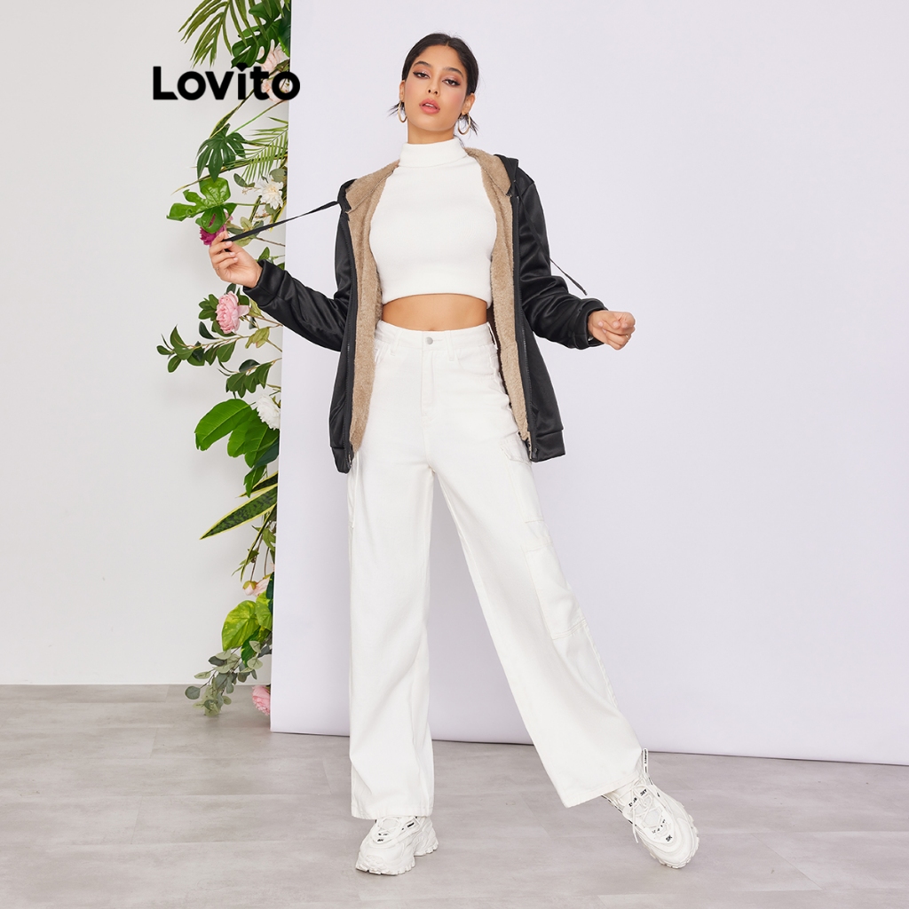 Lovito áo khoác thường ngày trơn có khóa kéo cổ cao cho nữ l47ld012 (Màu Trắng)