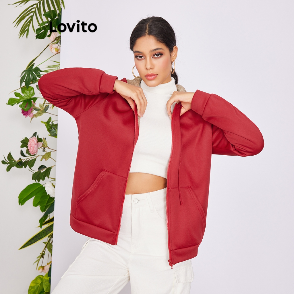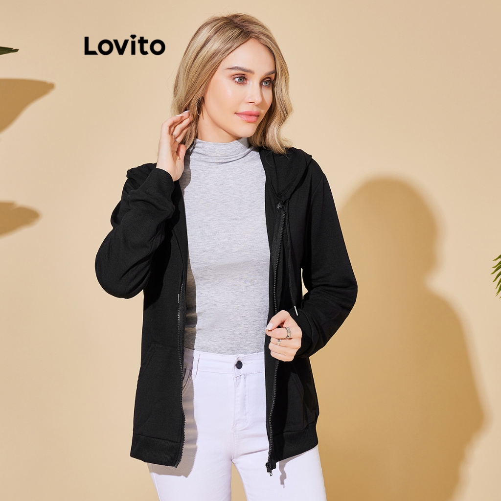 Lovito Áo khoác nữ thường ngày có khóa kéo màu trơn lne17161 (Nhiều màu)