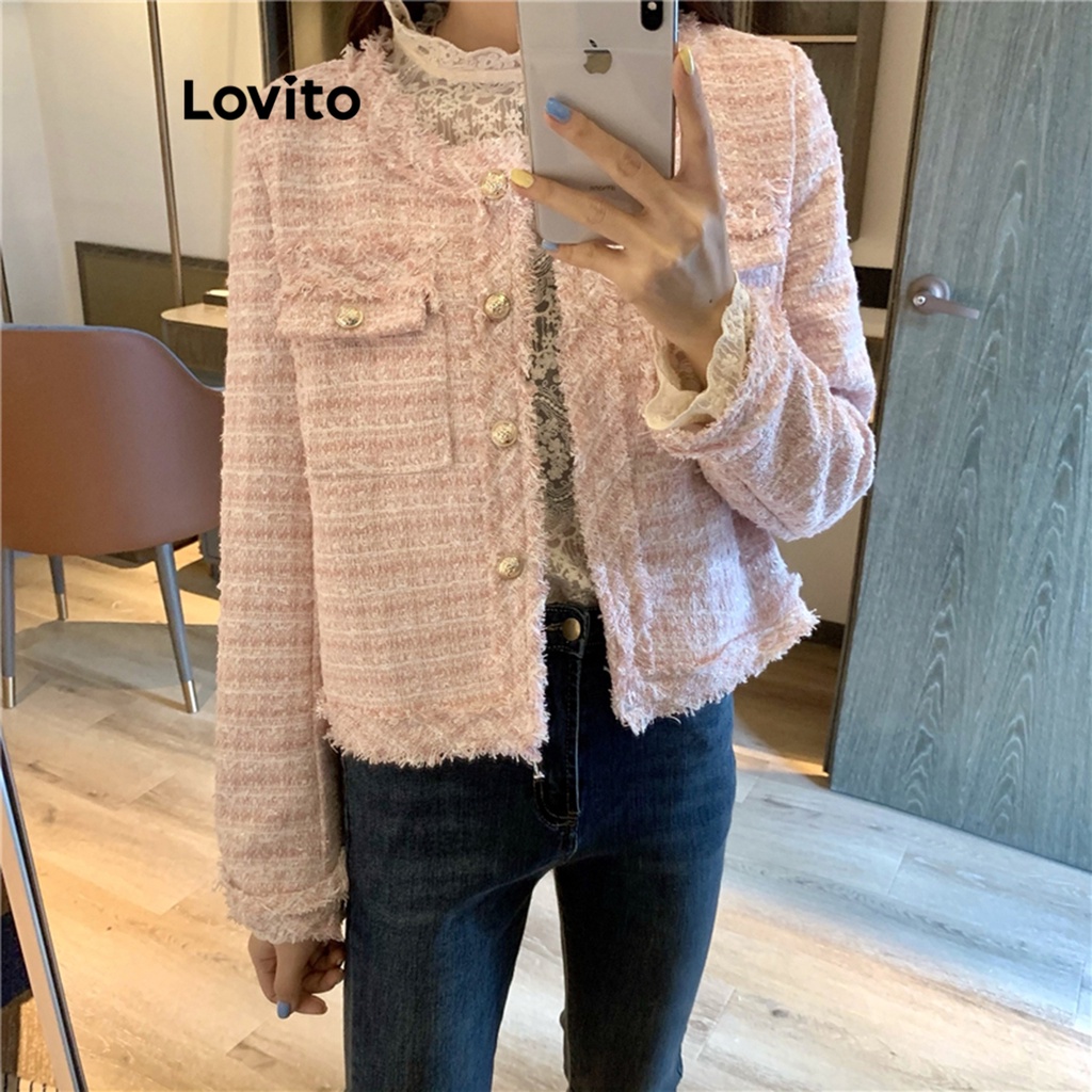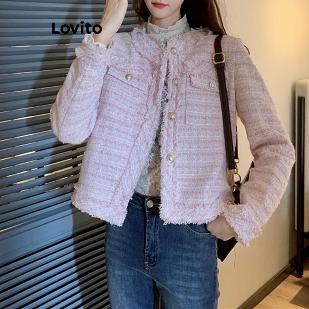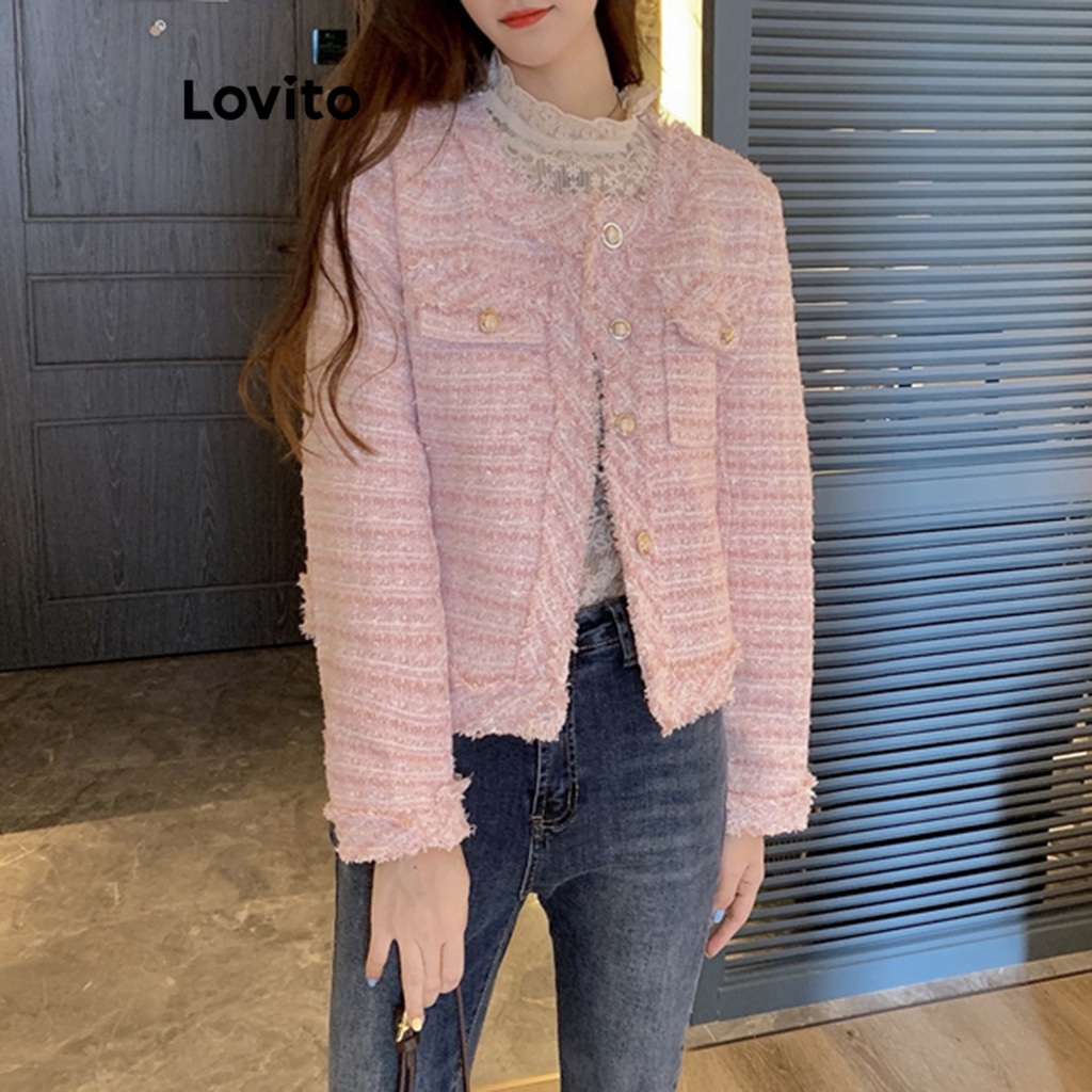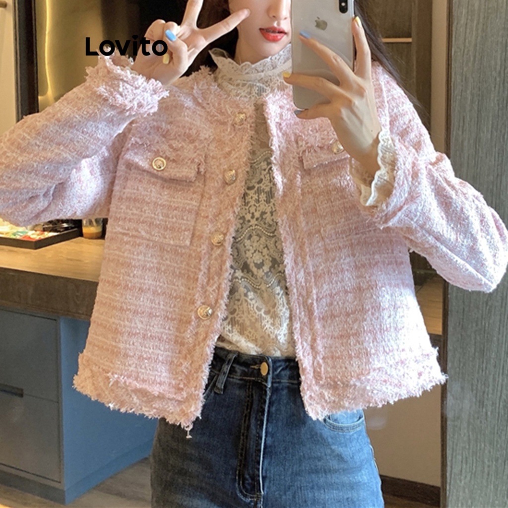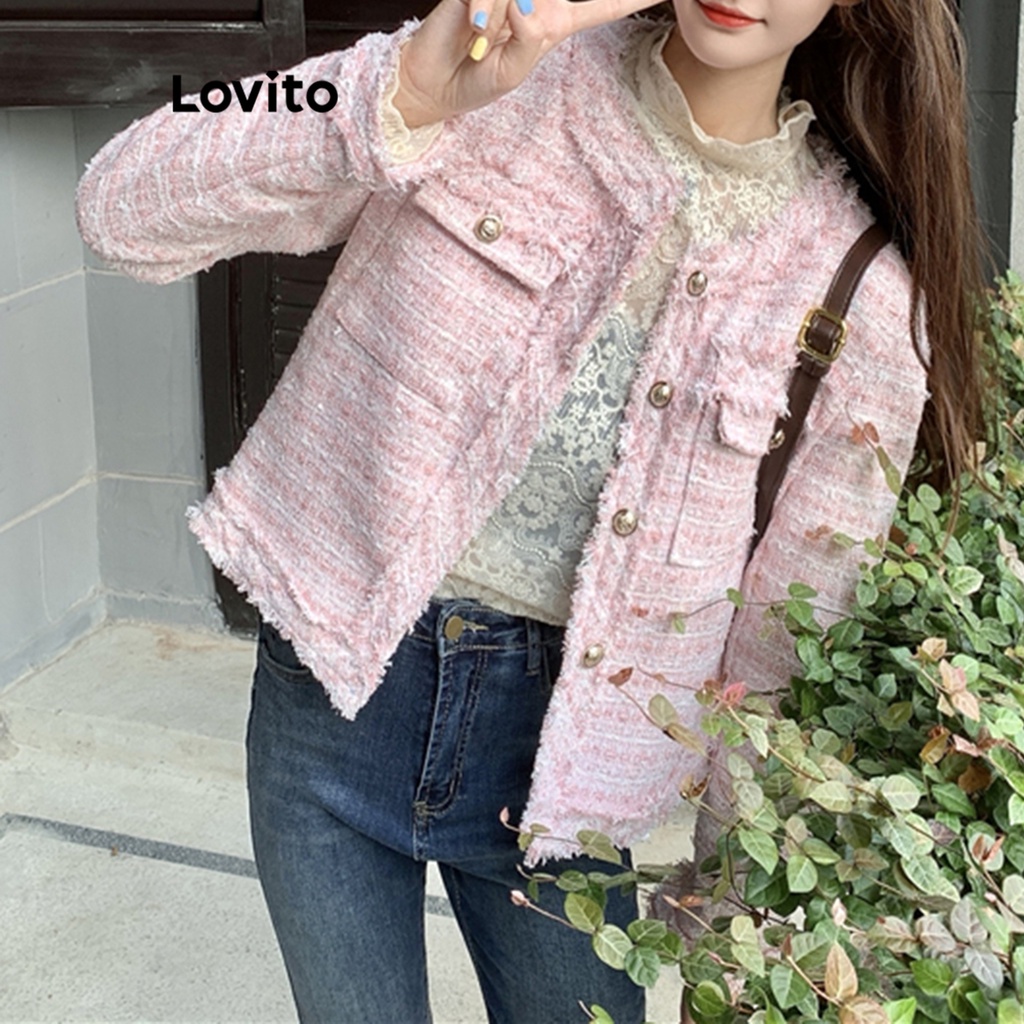 Lovito Áo khoác nữ cổ cài khuy thanh lịch l32fw095 (màu đen) (chỉ trực tiếp)