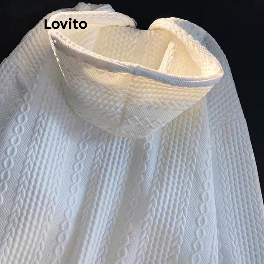 Lovito áo khoác thường ngày trơn có khóa kéo cổ cao cho nữ l47ld012 (Màu Trắng)