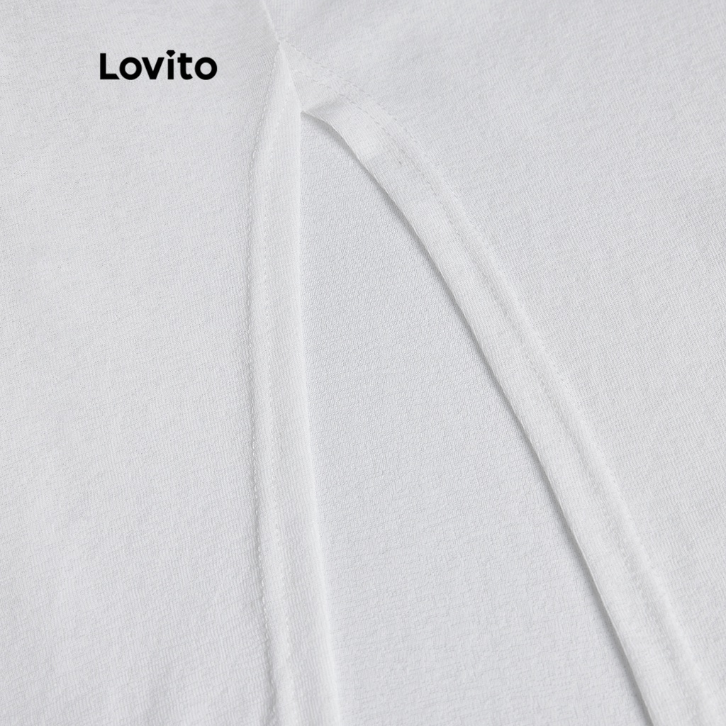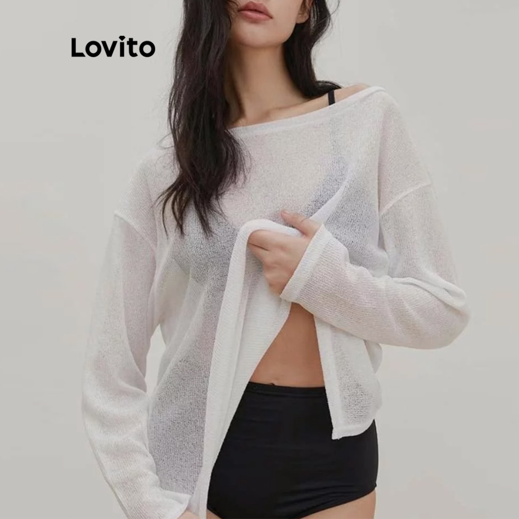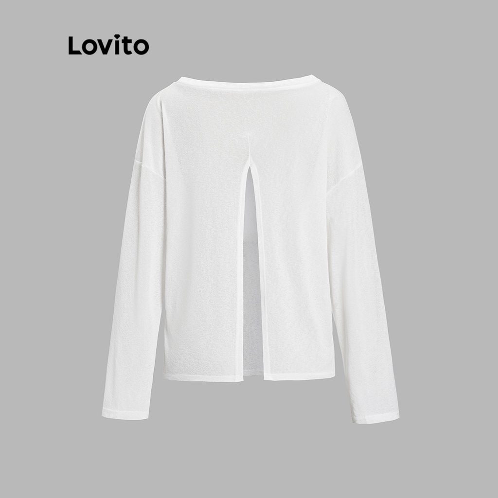 Lovito Áo khoác nữ dệt kim màu trơn thường ngày lne13013 (Màu Trắng)