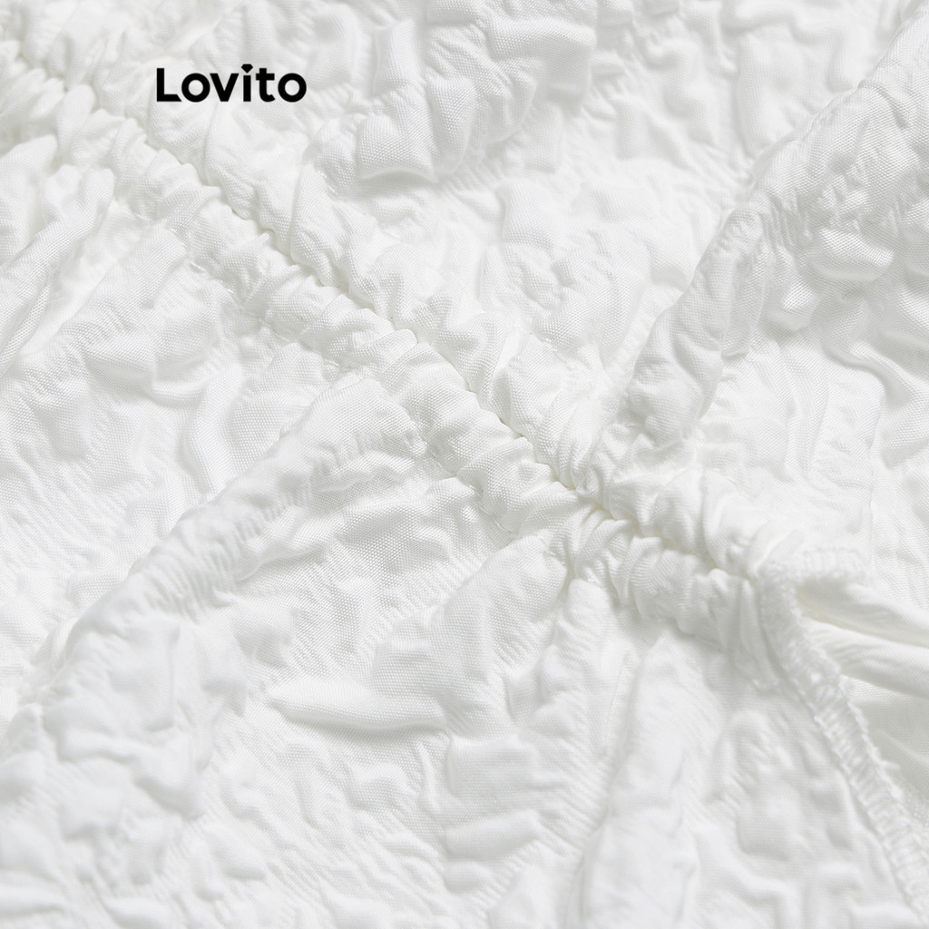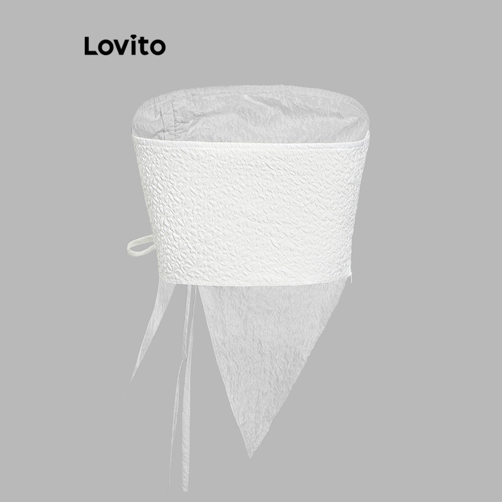 Lovito áo ba lỗ nữ viền nhún bèo màu trơn thường ngày lne35069 (Trắng/Xanh dương/Đen)