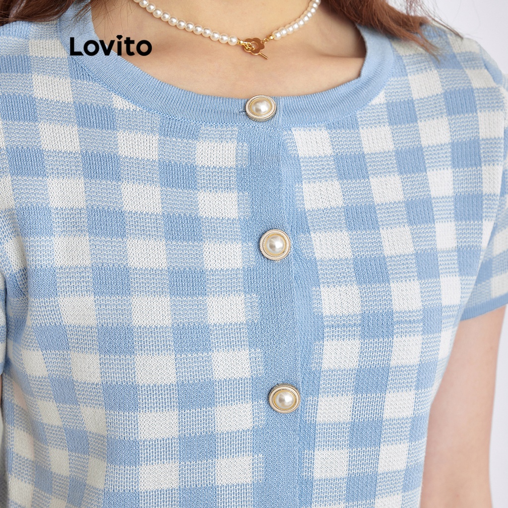 Lovito Áo Khoác Cardigan phía trước nút màu trơn thường ngày lne27151 (màu xanh dương)