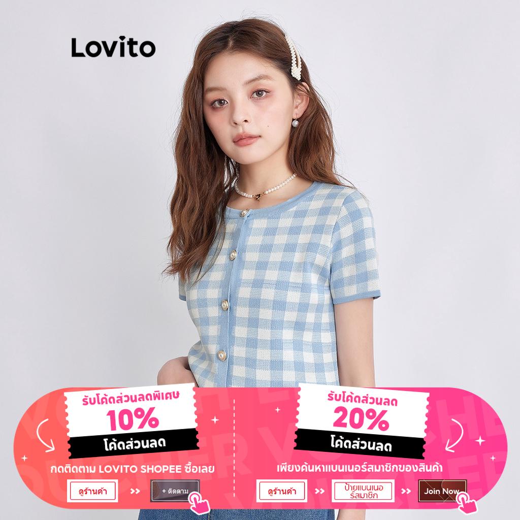 Lovito Áo len trơn mỏng thường ngày cho Nữ l58ad055 (Cà phê/Hoa Mai)