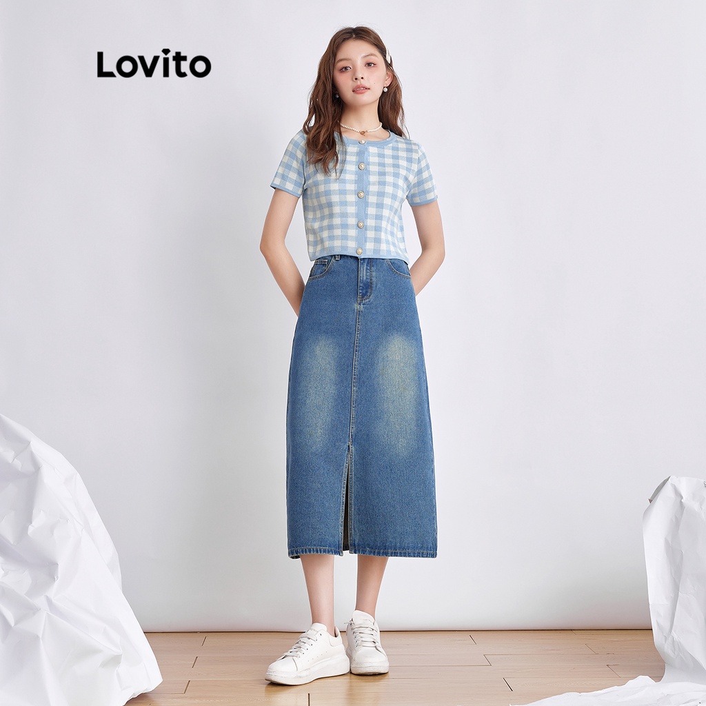 Lovito quần áo phía trước có khuy màu trơn thường ngày cho Nữ lne27211 (màu xám đậm)