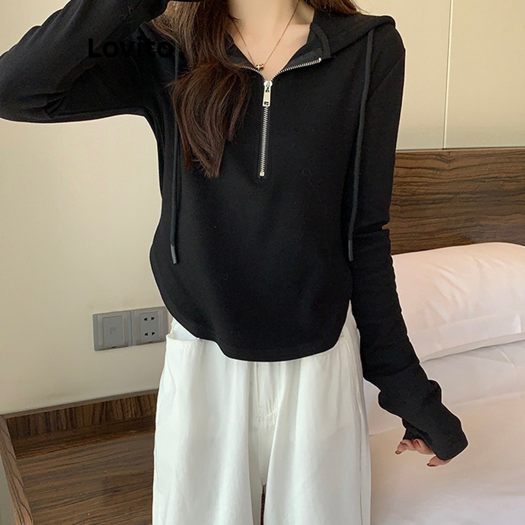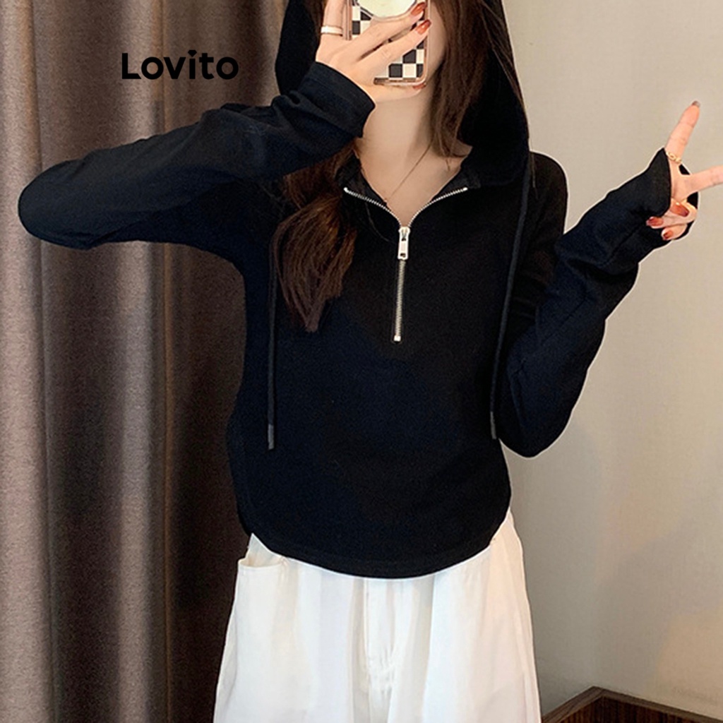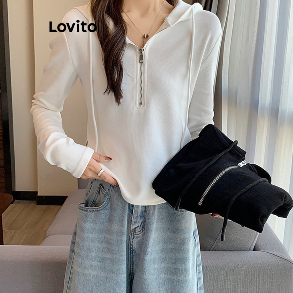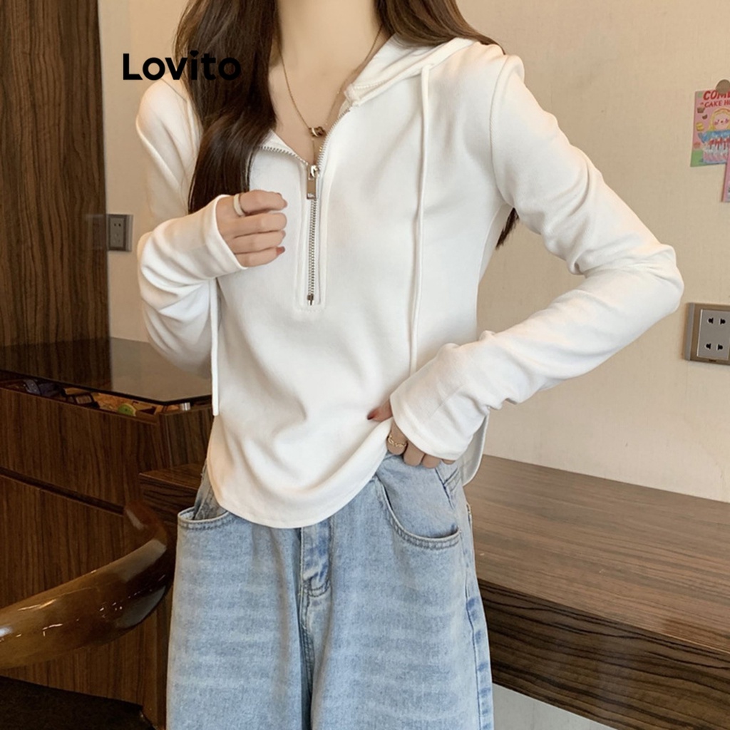 Lovito Áo Len Nữ Dài Tay Khóa Kéo Màu Trơn thường ngày l64ad035 (Màu Trắng)
