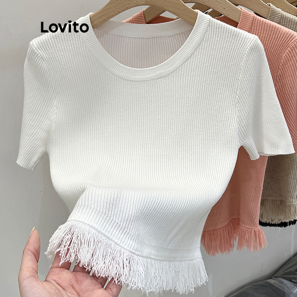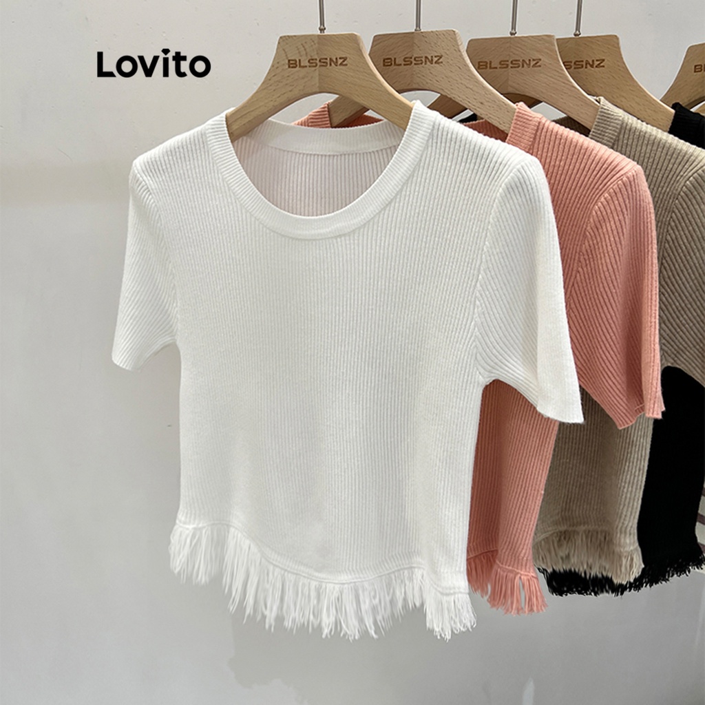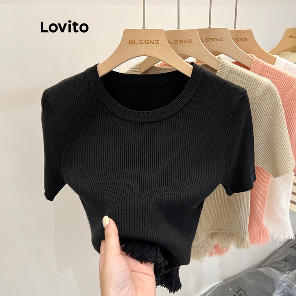 Áo chui đầu nữ dệt kim màu trơn thường ngày lovito lne21090 (Màu mơ/Trắng/Đen)