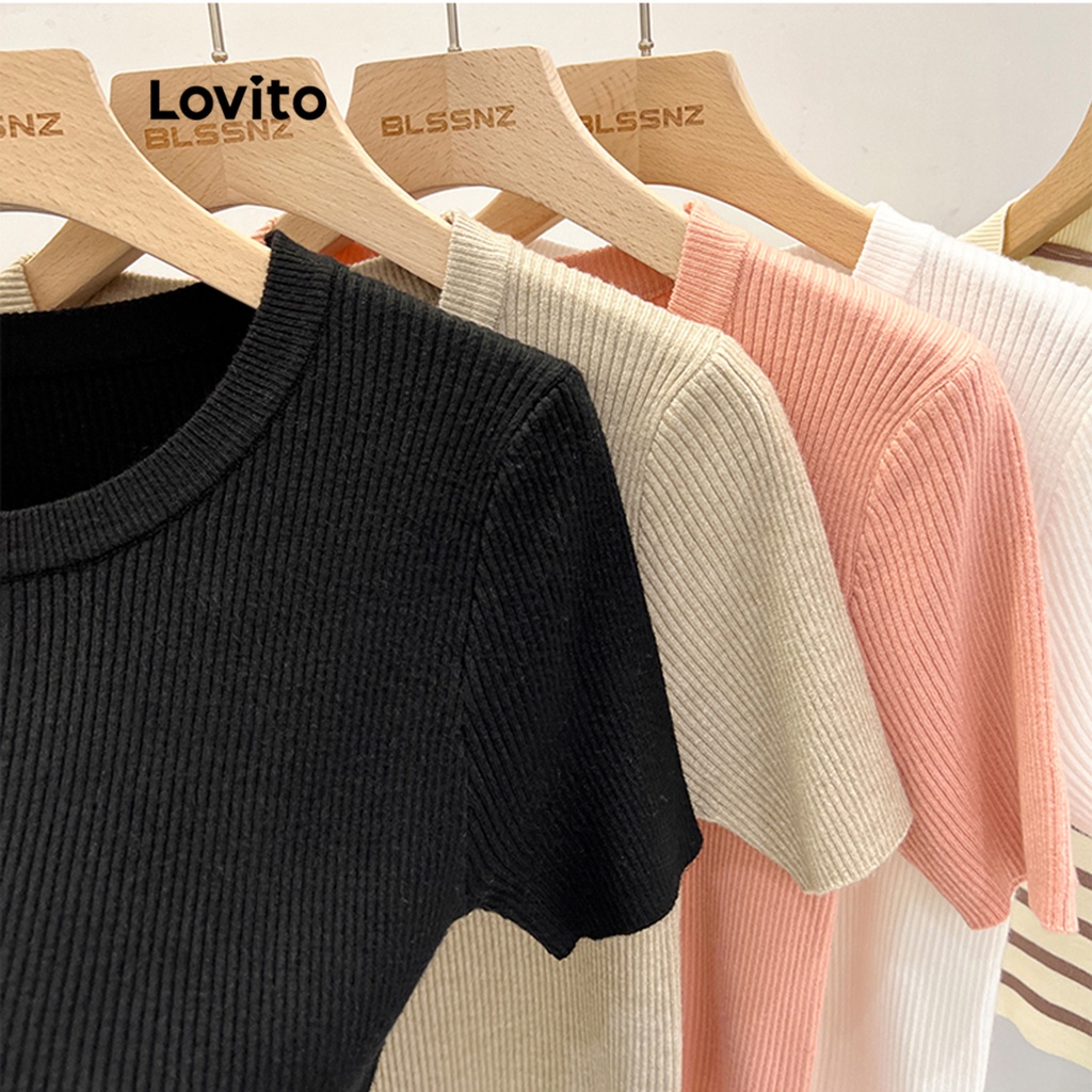 Lovito Áo len trơn mỏng thường ngày cho Nữ l58ad055 (Cà phê/Hoa Mai)