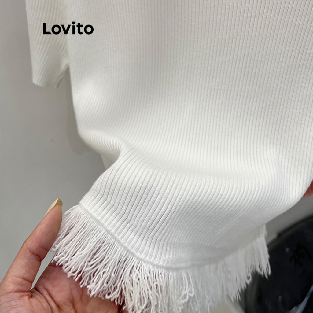 Lovito Áo Gi-lê dệt kim không tay cổ tròn kẻ sọc thường ngày cho Nữ lne02112 (Màu Trắng)
