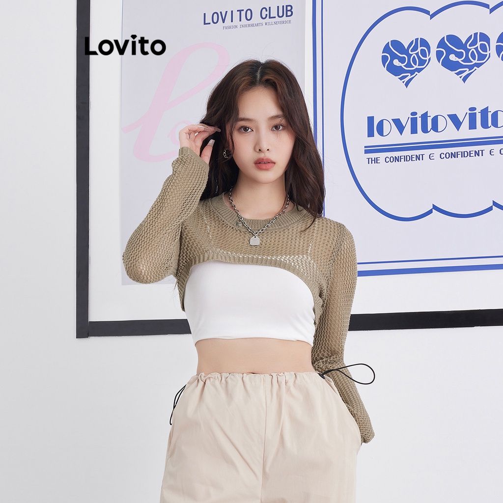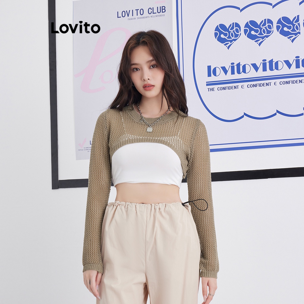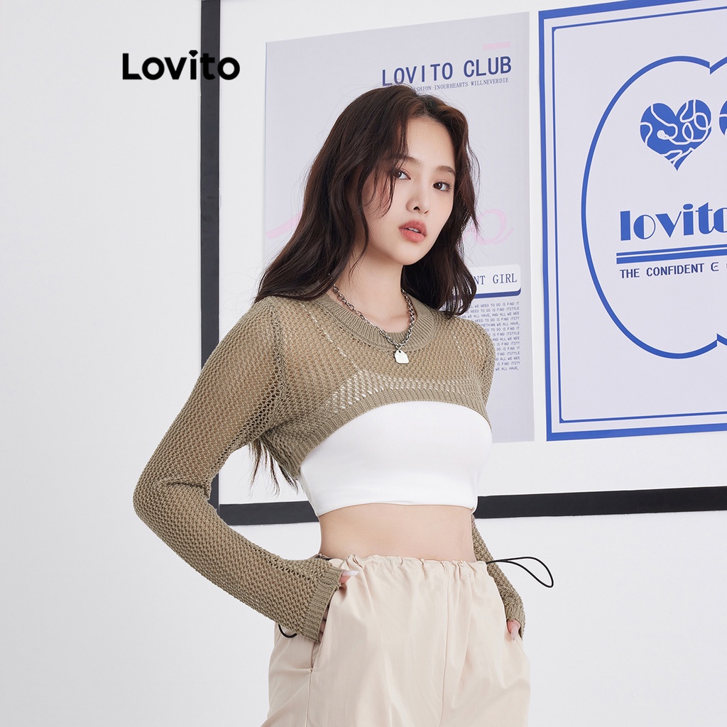 Áo chui đầu nữ dệt kim màu trơn thường ngày lovito lne21090 (Màu mơ/Trắng/Đen)
