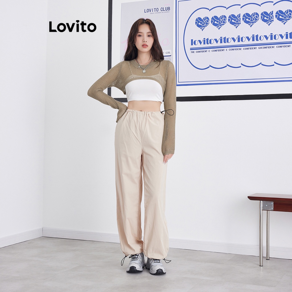 Lovito áo hở eo không tay viền bất đối xứng màu trơn thường ngày cho Nữ lna08005 (Cà phê)
