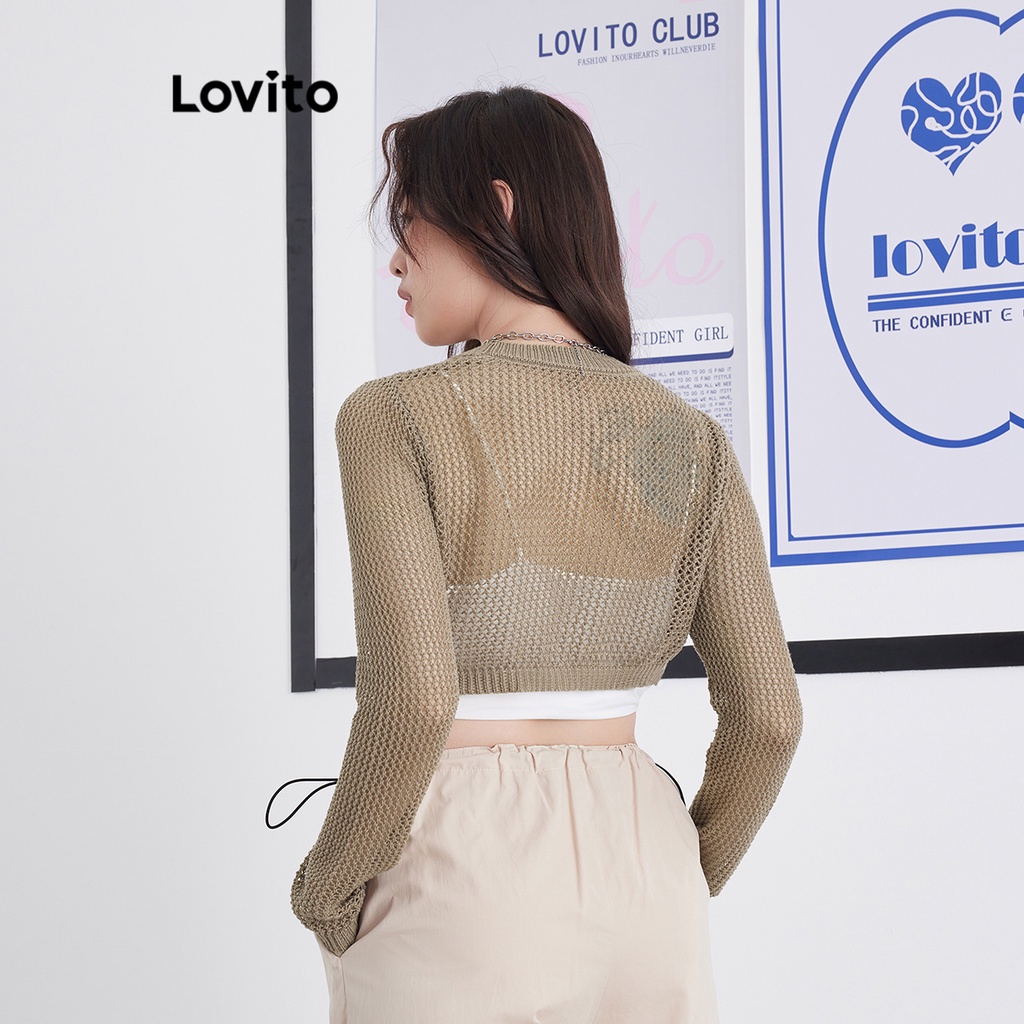 Lovito Áo cardigan dệt kim ngắn tay cổ chữ V màu trơn thường ngày cho Nữ lex01009 (Hoa mai)