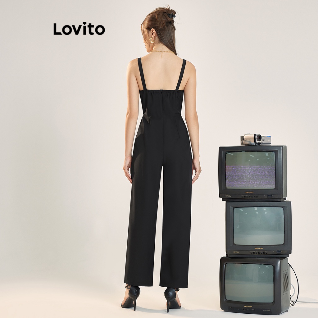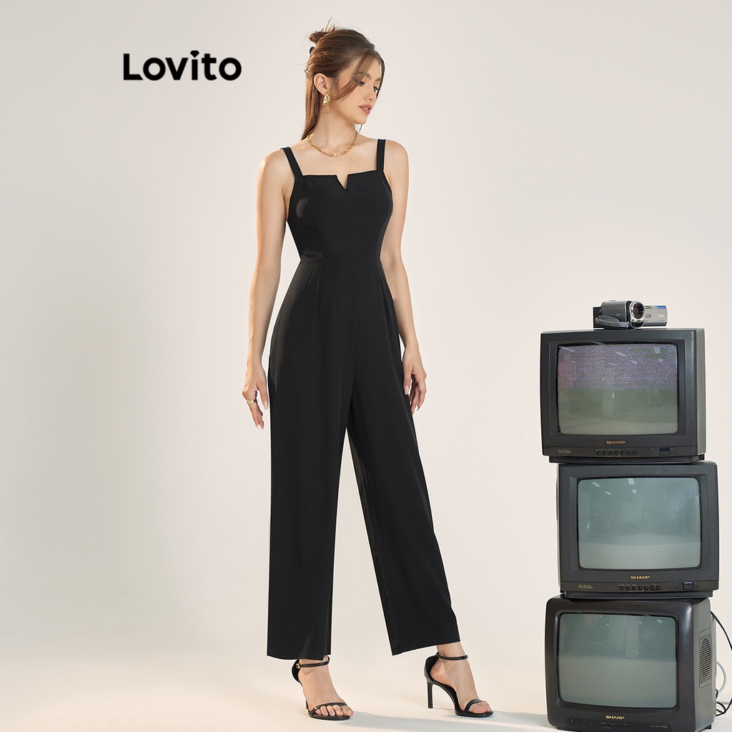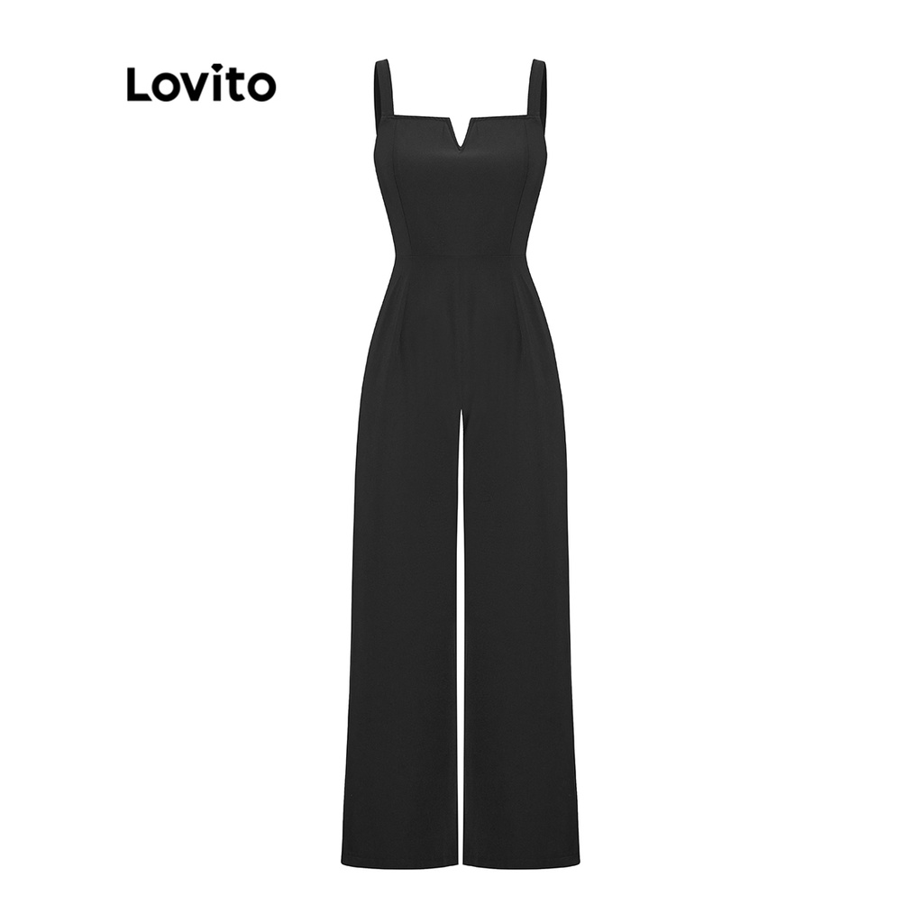 Lovito áo liền quần xẻ khối màu trơn thường ngày cho Nữ l55ad069 (Màu Đen)