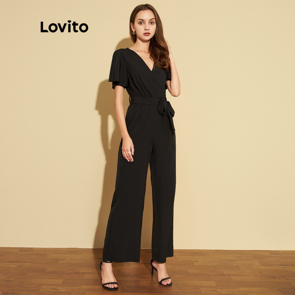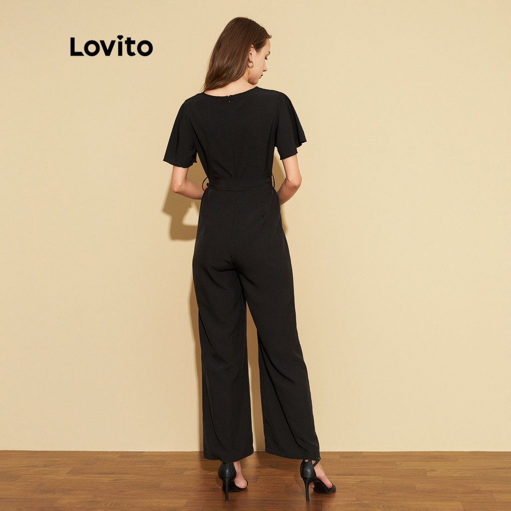 Lovito áo liền quần thường ngày màu trơn cơ bản cho nữ l65ed187 (Màu Đen)