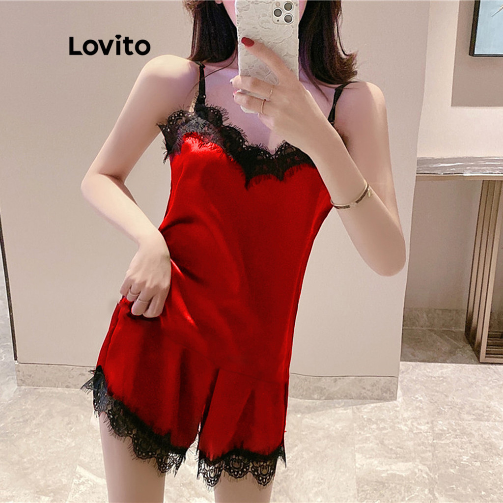 Lovito Áo ngủ vải sa tanh có nút Bỏ Túi màu trơn thường ngày cho Nữ lna18007 (Màu Hồng)