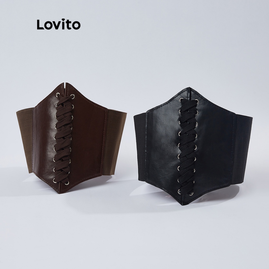 Lovito 2 chiếc áo nịt định hình cơ thể màu trơn thường ngày l18x348 (Cà phê/Đen)