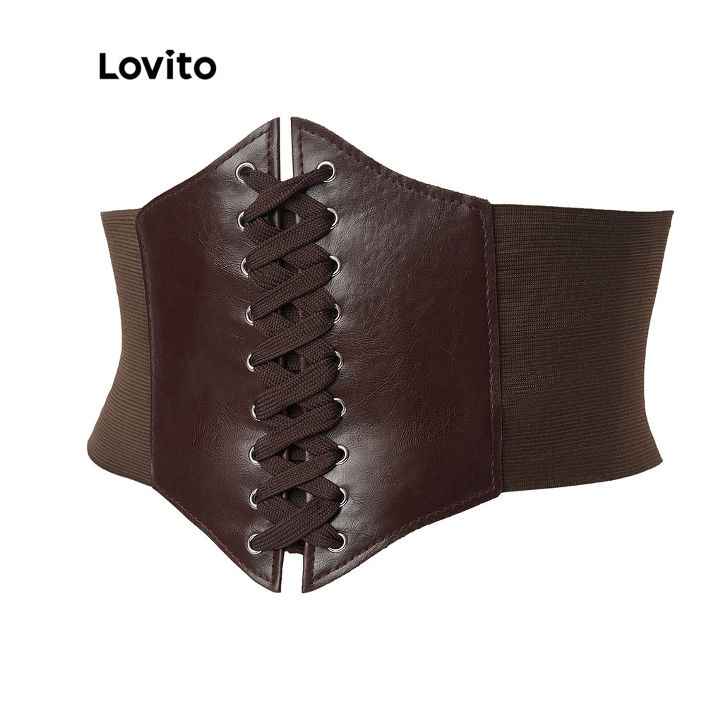 Lovito áo nịt ngực thường ngày kiểm soát bụng cơ bản màu trơn cho nữ lna23045 (Kaki/Màu đen)