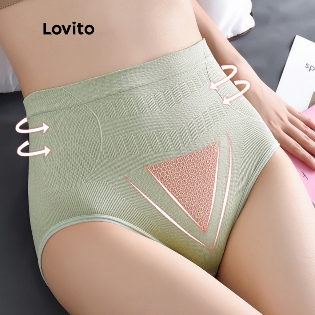 Lovito Đồ định hình đồ nâng mông cạp cao màu trơn l004014 (màu xanh lá/màu be/Màu xanh lá cây)