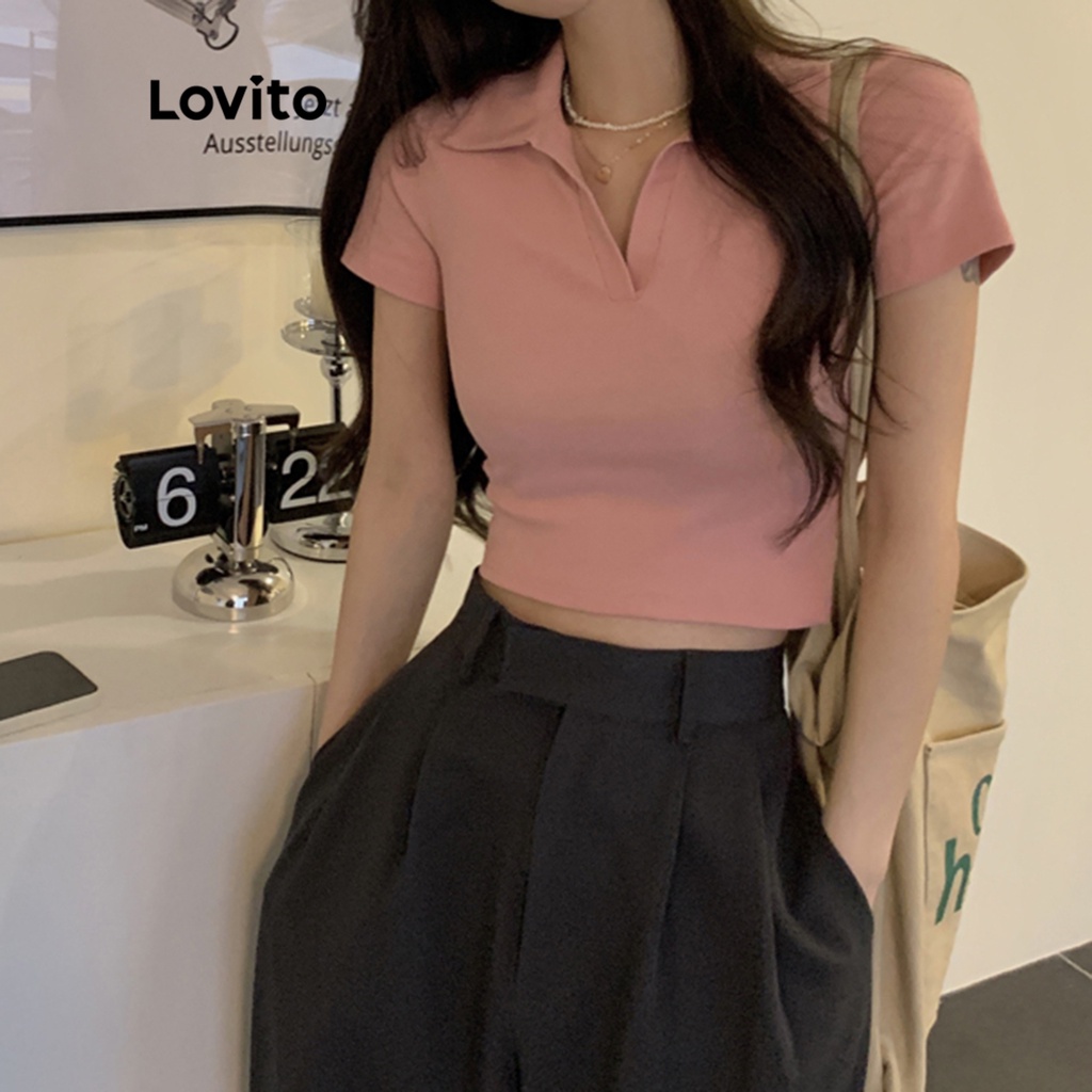 Áo phông nữ lovito lne27015 đầu xiên màu trơn thường ngày (Nhiều màu)