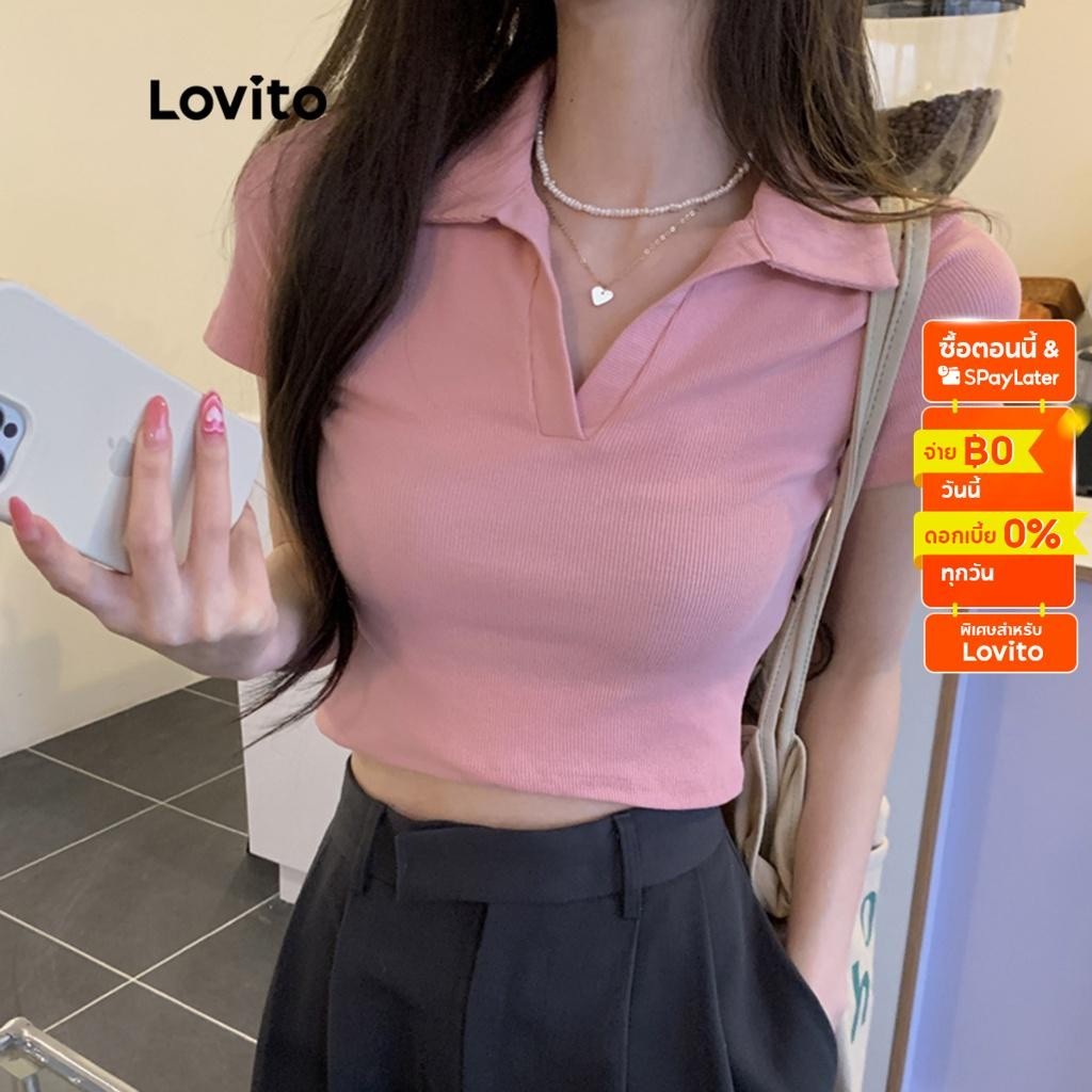 【Celep】lovito Áo polo dáng rộng màu trơn thường ngày l20d1144 (Màu Trắng)