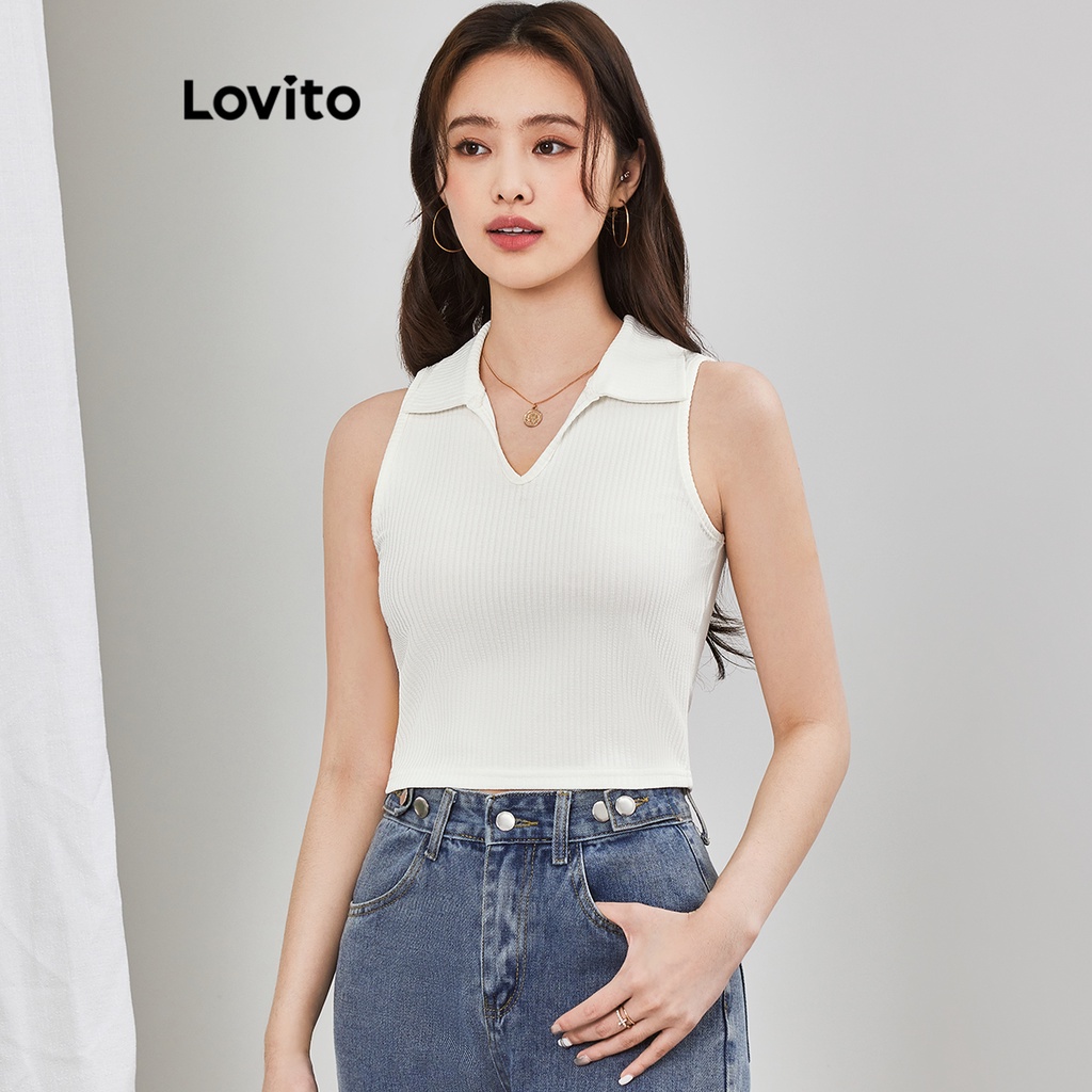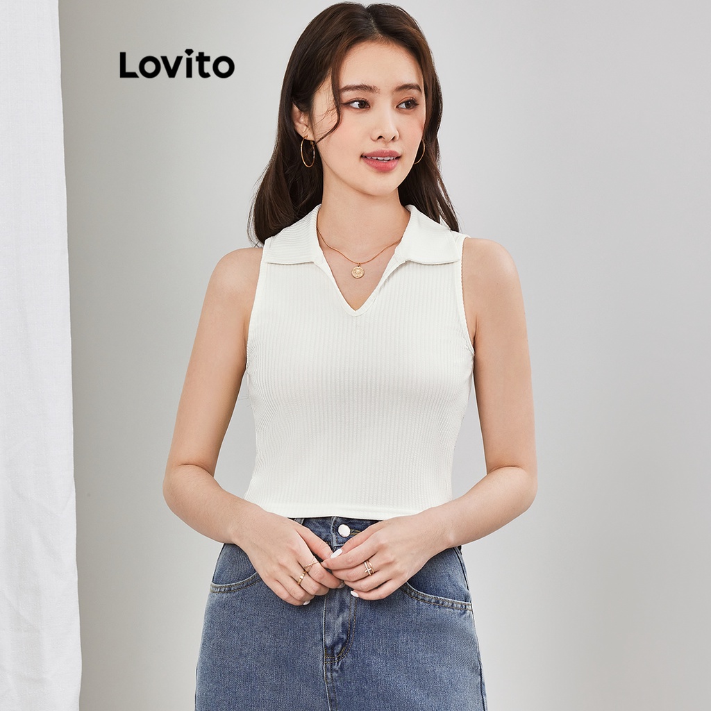 【Celep】lovito Áo polo dáng rộng màu trơn thường ngày l20d1144 (Màu Trắng)