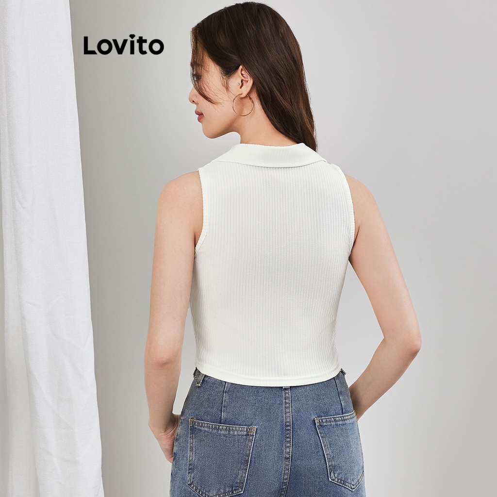 Lovito áo phông nữ thanh lịch đơn giản có Cúc phía trước l65ed031 (Màu Trắng)