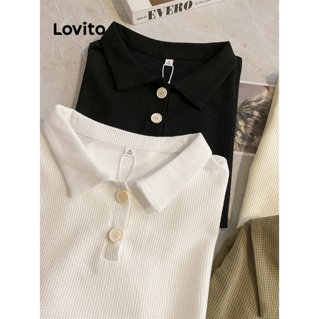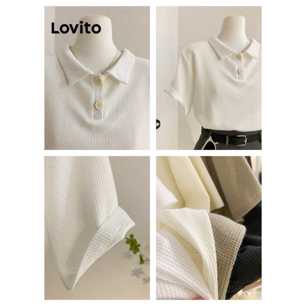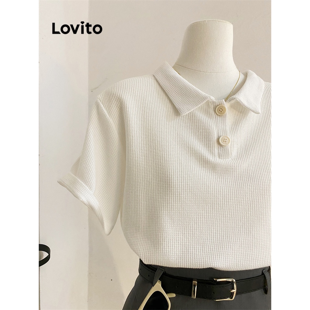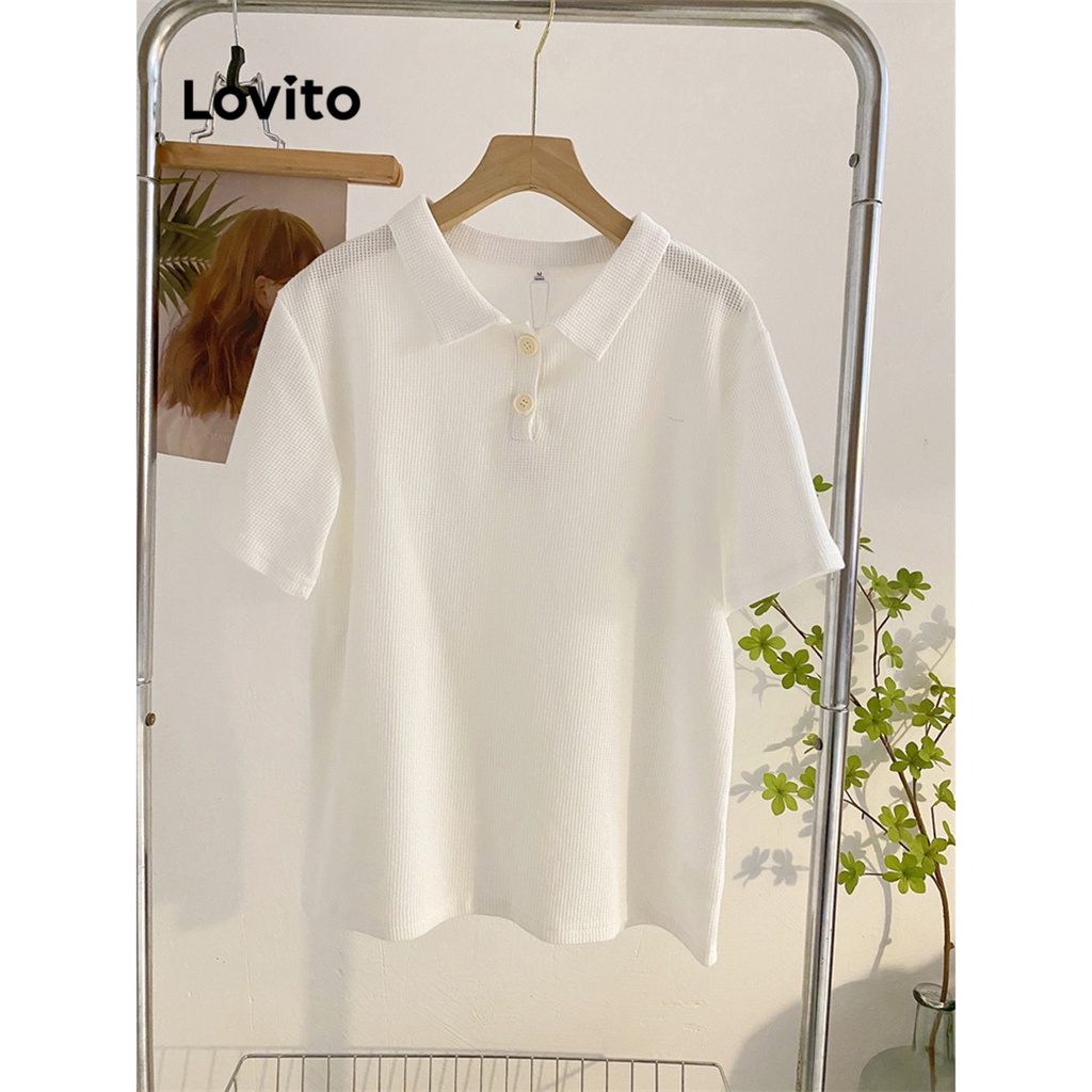 Lovito áo phông nữ thanh lịch đơn giản có Cúc phía trước l65ed031 (Màu Trắng)