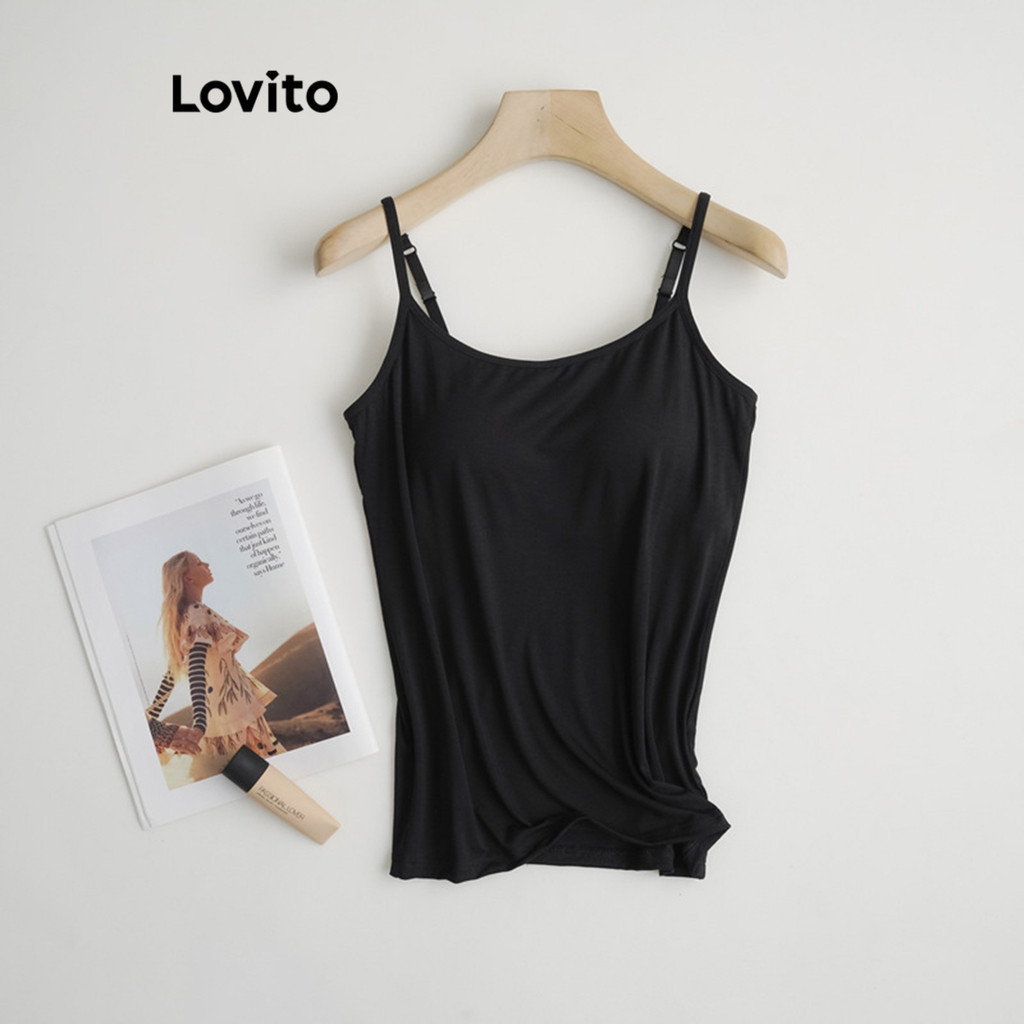 Lovito Áo thể thao cắt ngắn không ma sát Bộ đồ tập Yoga thể dục cho nữ l34ad012 (Màu Đen)