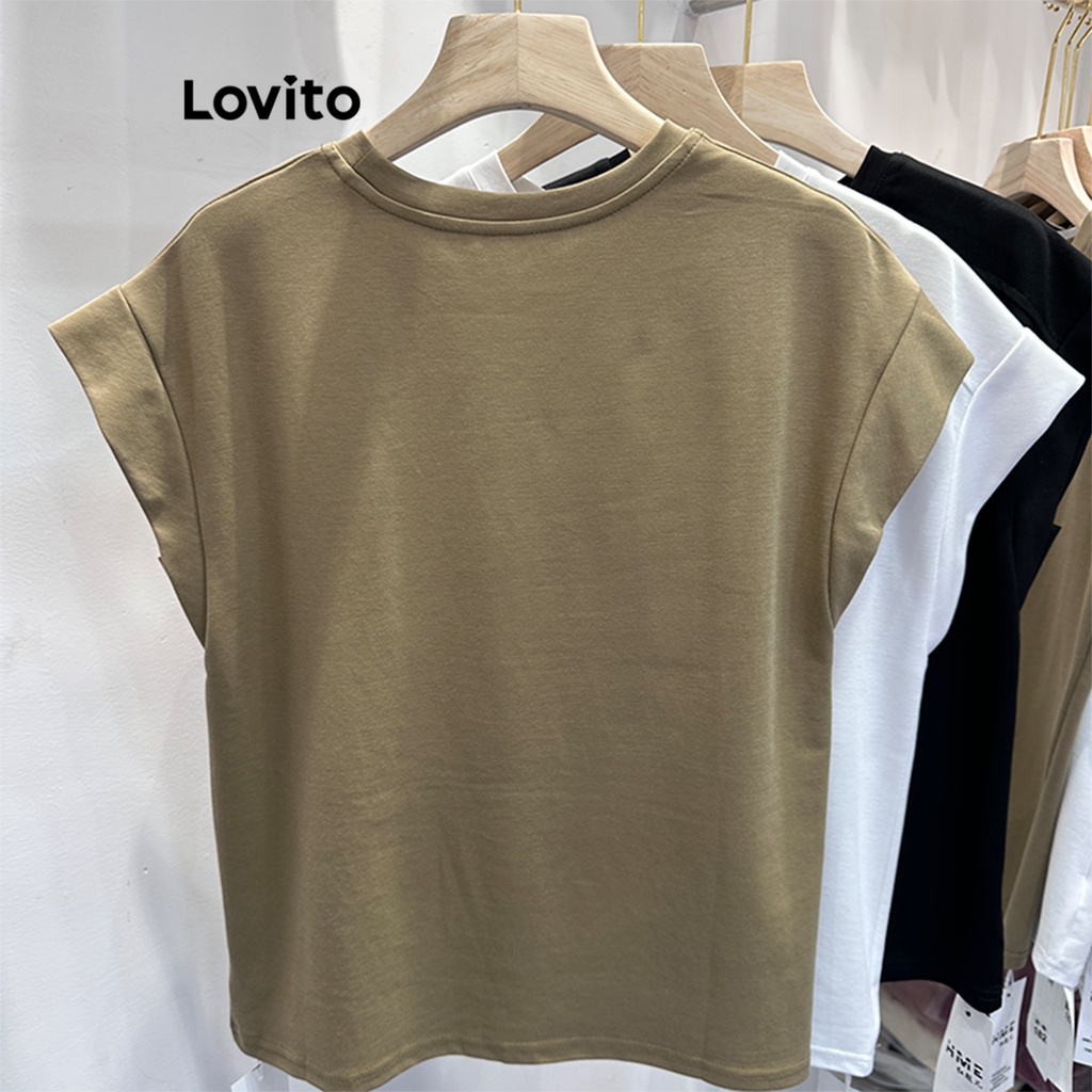 Lovito Áo Thun Nữ Tay Ngắn Trơn Cổ Chữ V thường ngày l53ad077 (Nhiều màu)