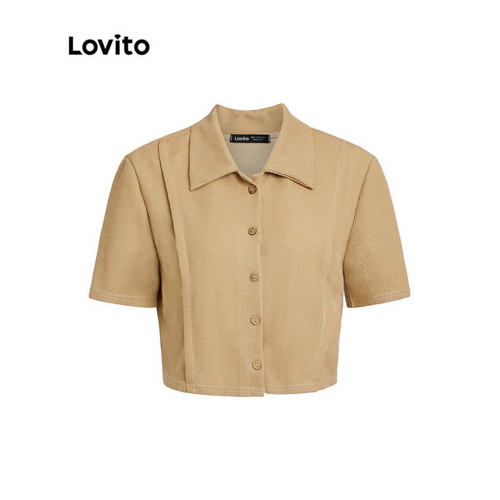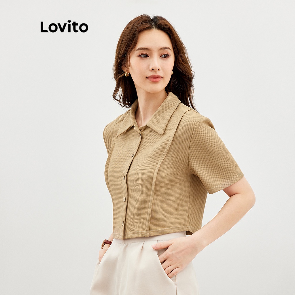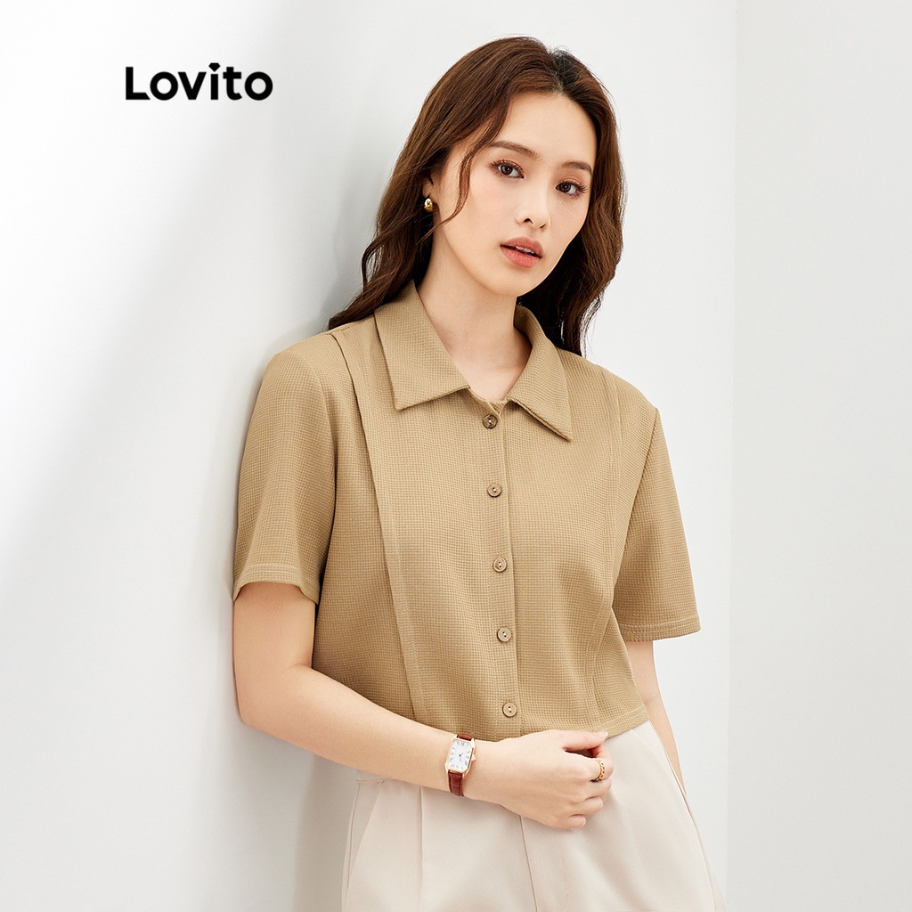 Lovito Áo Sơ Mi Nữ Cổ Bẻ Khóa màu trơn thường ngày lne39539 (Màu Trắng nhạt/xanh lá/xanh dương hải quân)