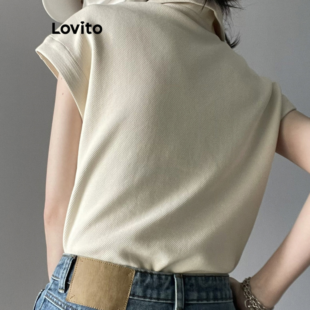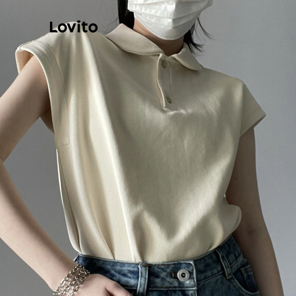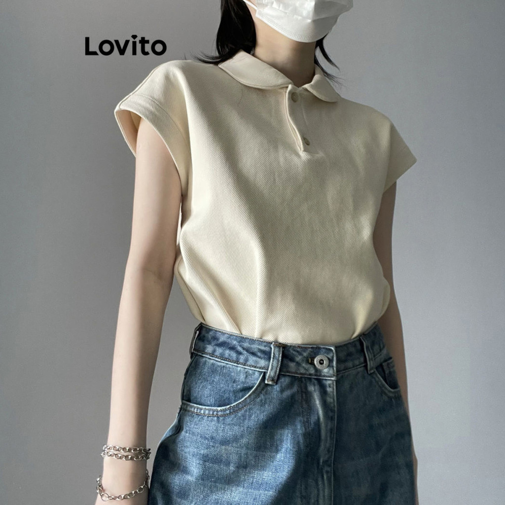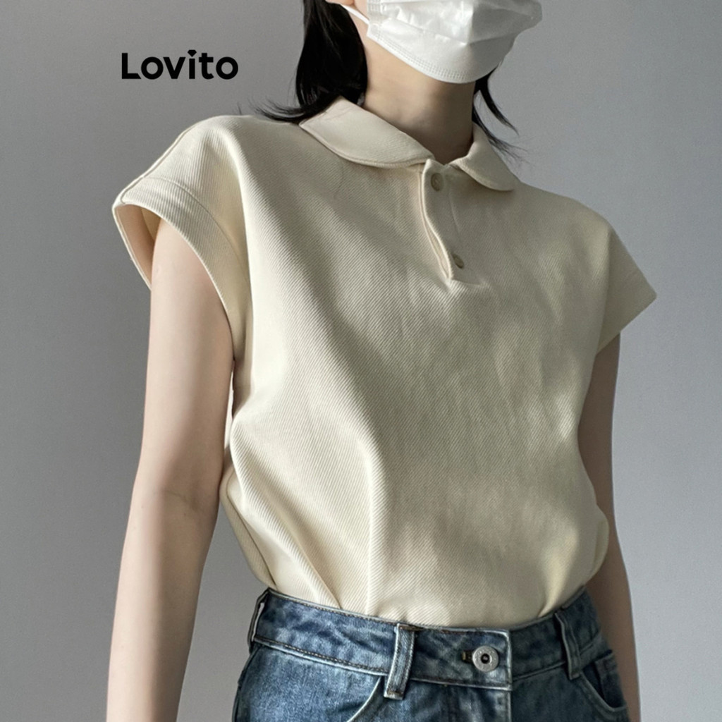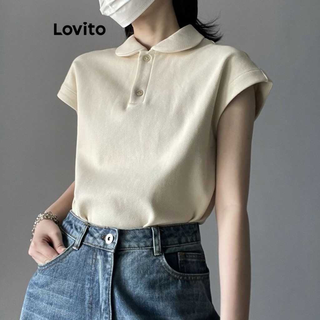 Lovito Áo Thun Nữ Tay Ngắn có khuy màu trơn thường ngày lna08072 (Nhiều màu)
