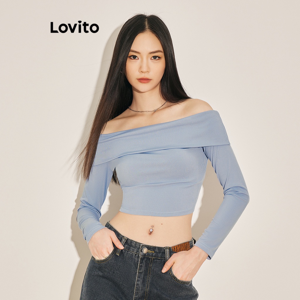 Áo thun màu trơn thường ngày chữ thập cho nữ lovito l45ad003 (Nhiều màu)